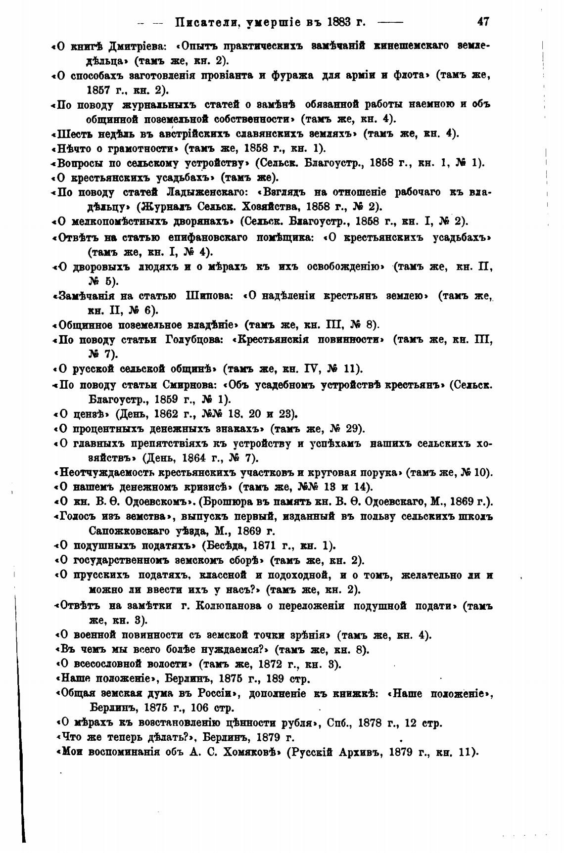 «Мои объ А. С. ХомякоМ» (PyccEit Архивъ, 1879 г., кн. 11).