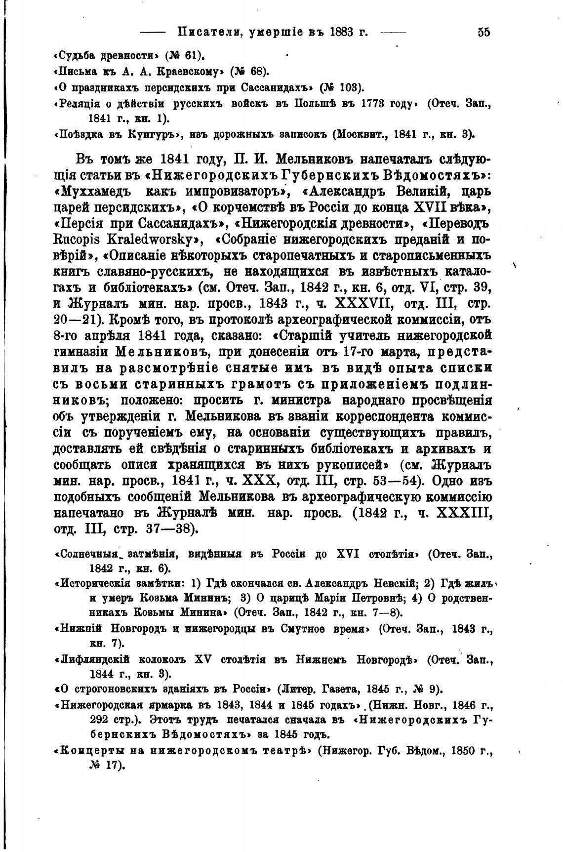 Въ том% же 1841 году, П. И. Мельниковъ напечаталъ сл%дую-