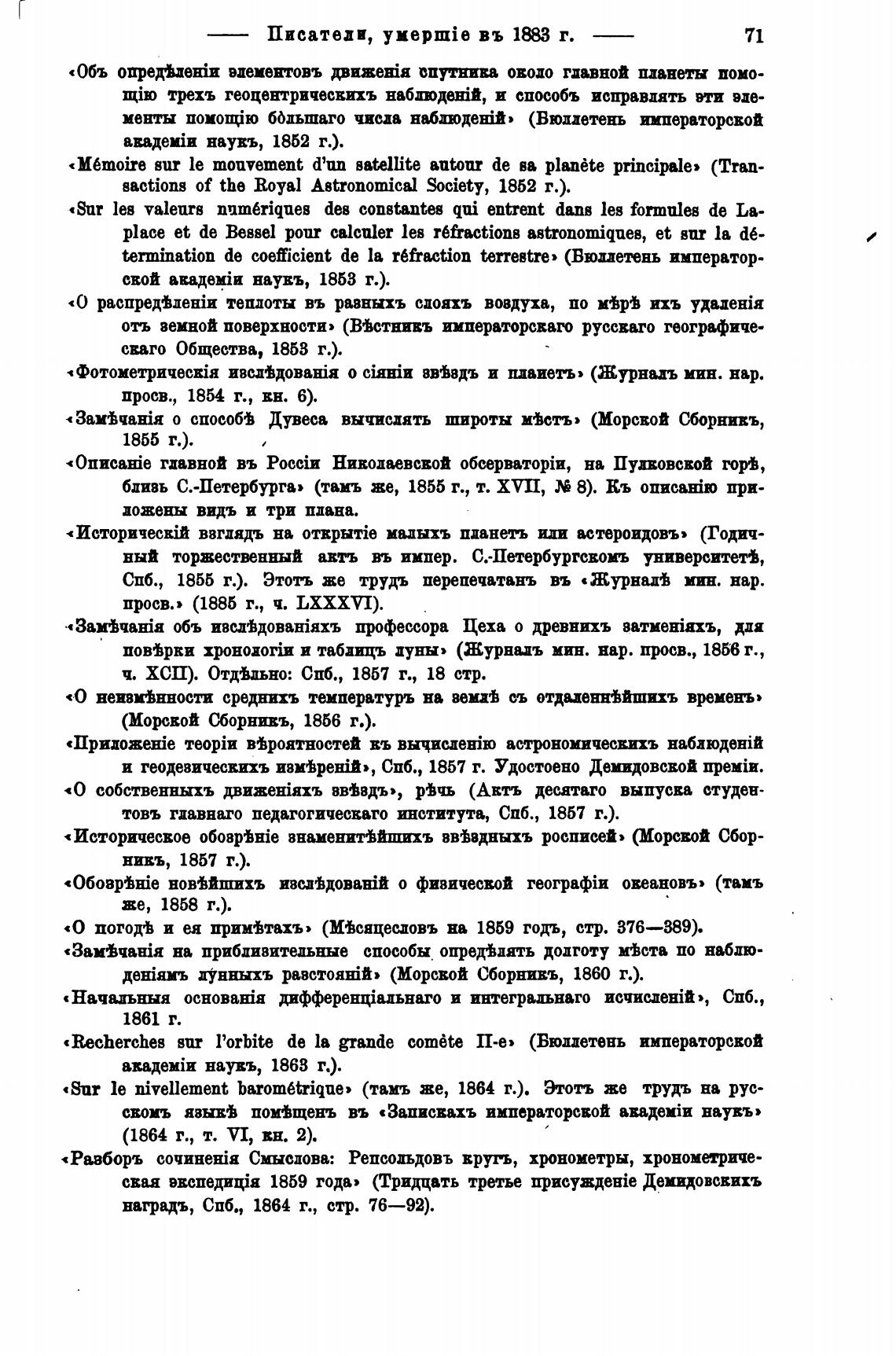 «Sur le nivellement (тамъ же, 1864 г.). Этотъ же трудъ на рус-