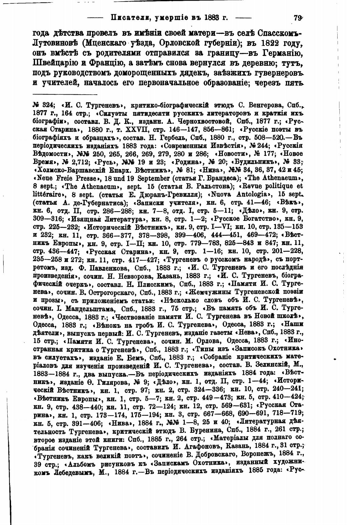 сочин. Н. Невворова, Казань, 1883 г.; «И. С. Тургеневъ, 6i0Tpa-