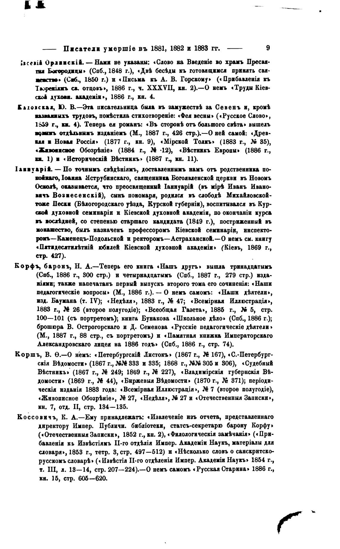 Коршъ, В. е.—О нбмъ: Листовъ» (1867 г., 167), «С.-Петербург-
