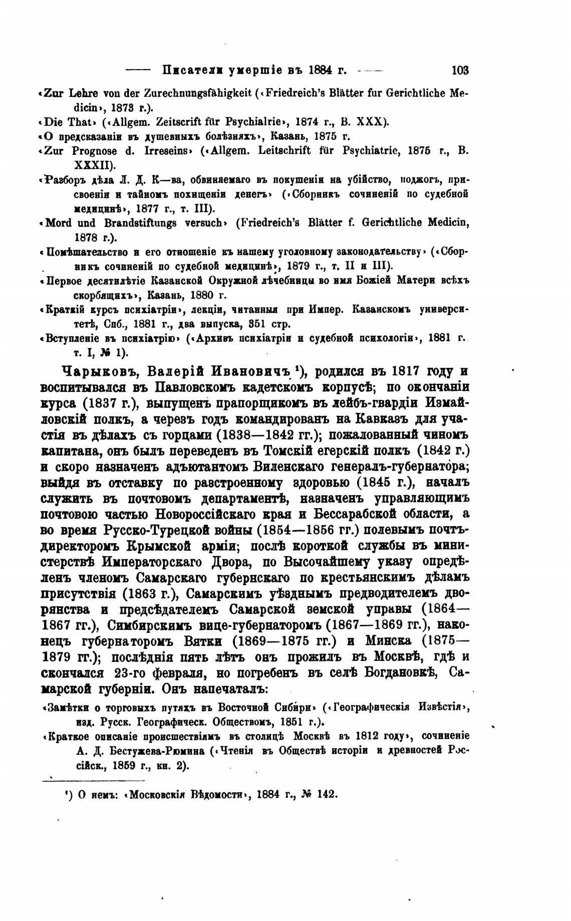 • ) О неиъ•. .MOCBOBCRiR В'Ьдомостя•, 1884 г., М 142.