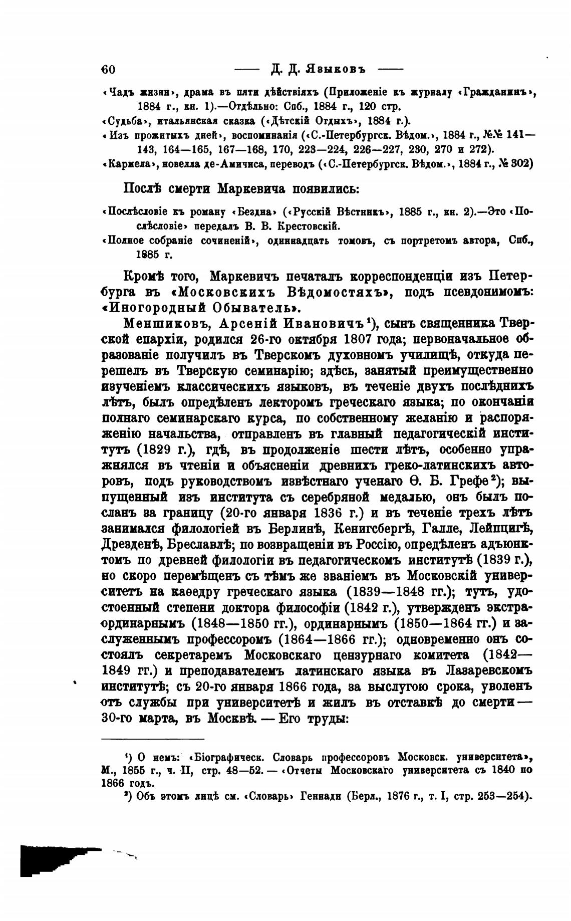 1) О немъ: Словарь профессоровъ Московсв. университета»,