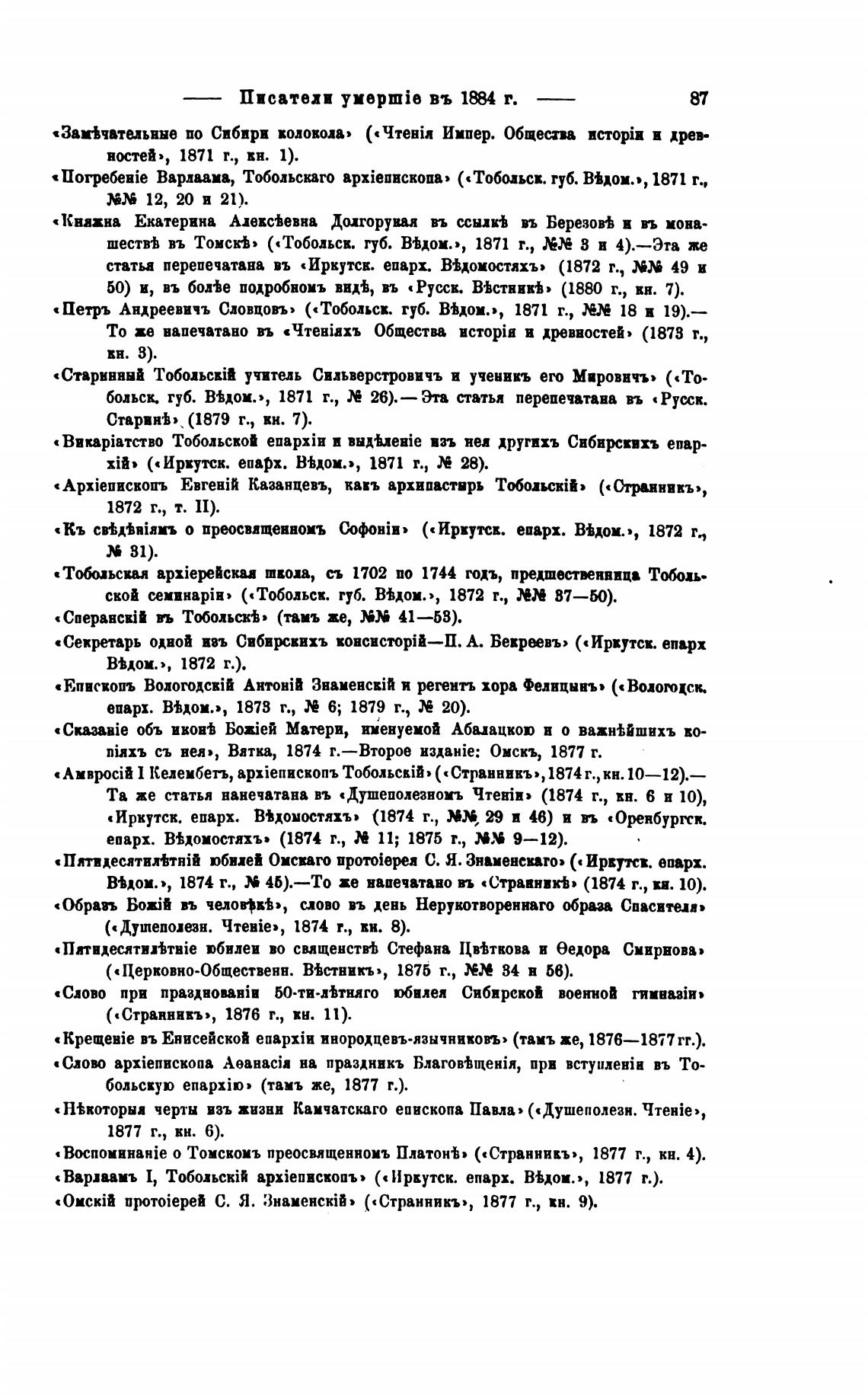 «Иркутск. епарх. В%домостяхъ» (1874 г., ММ, 29 и 46) в въ «Оренбургск
