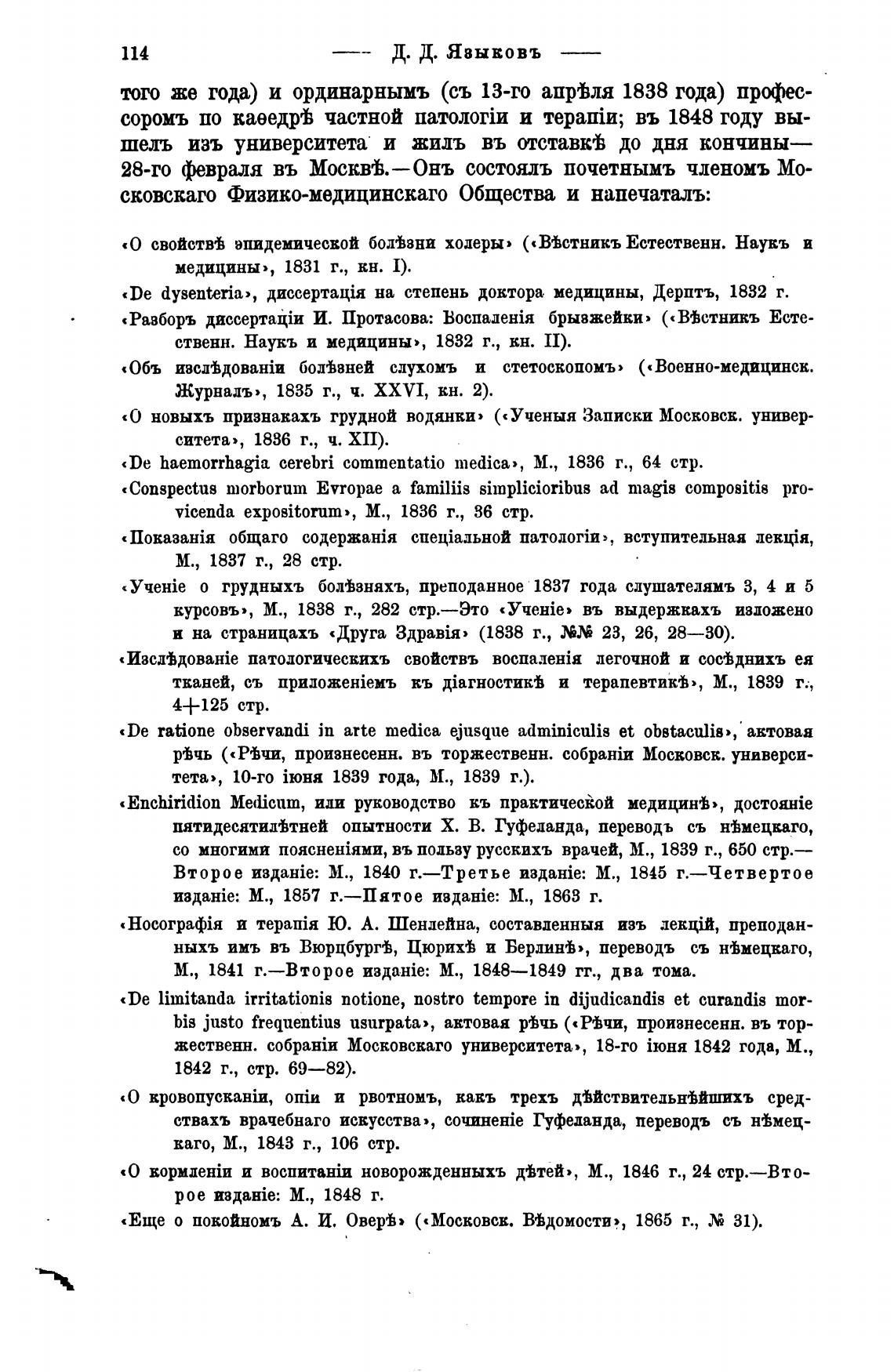 со многими въ пользу русскихъ врачей, М., 1839 г., 650 стр.—