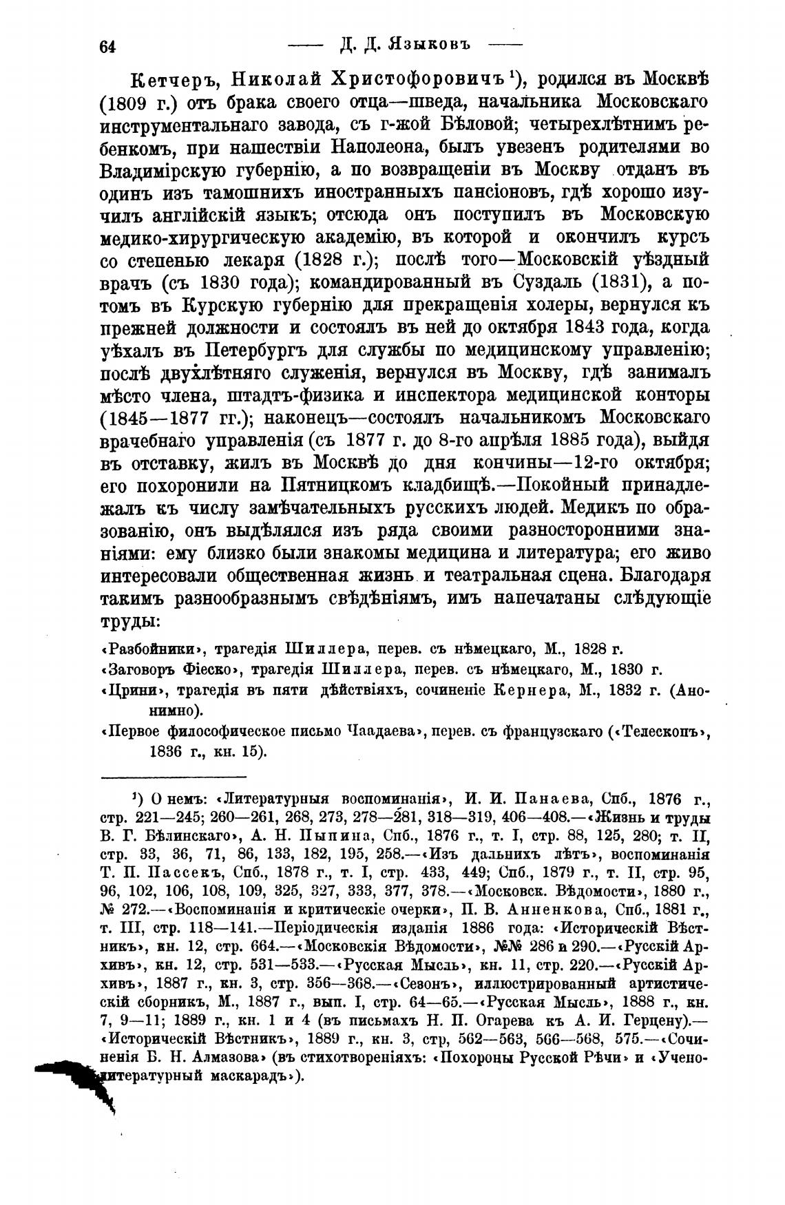 Кетчеръ, Николай Христофоровичъ 1), родился въ Москуь