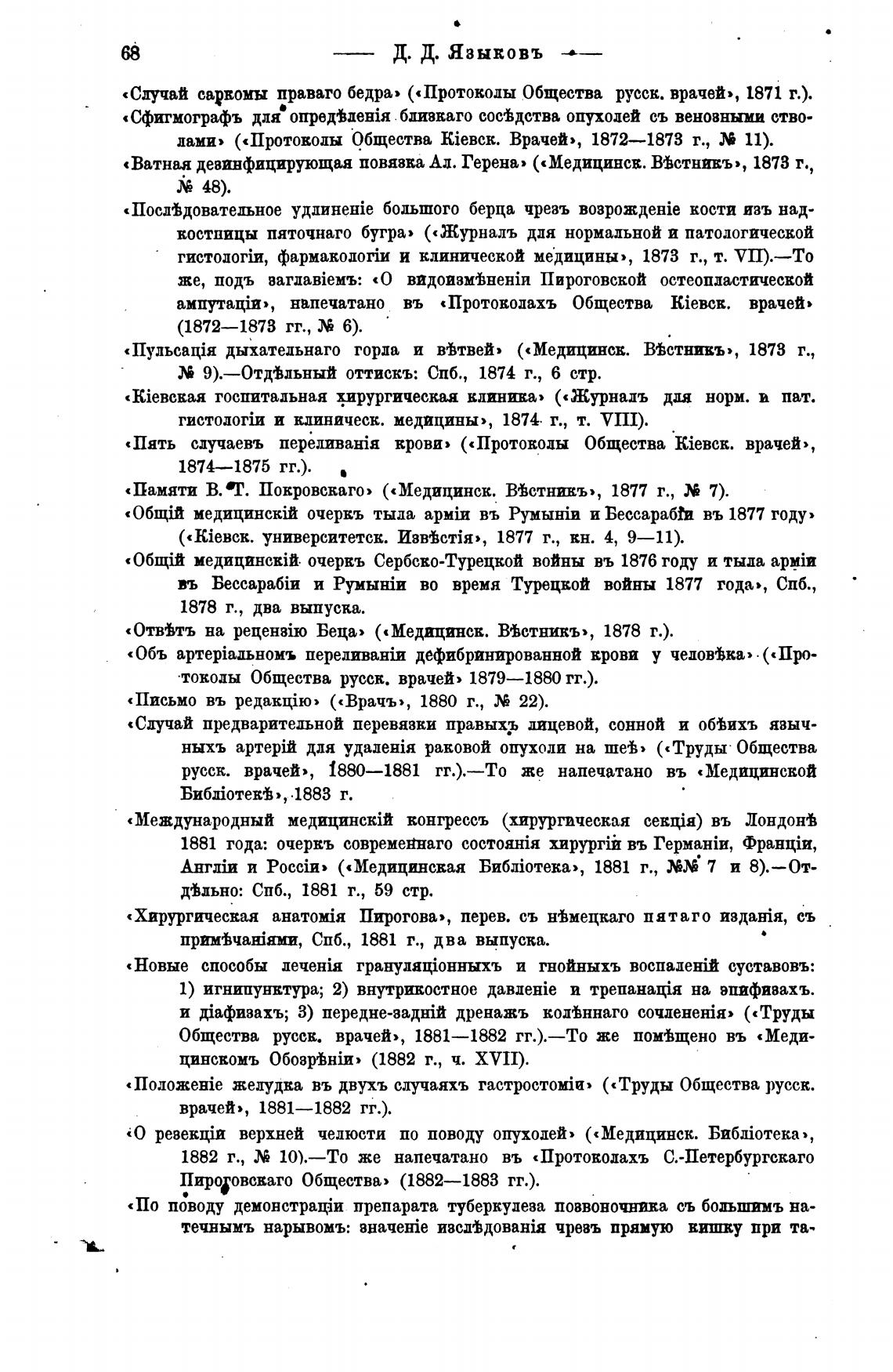 «Случай саркомы праваго бедра» («Протокоды Общества русск. врачей», 1871 г.).