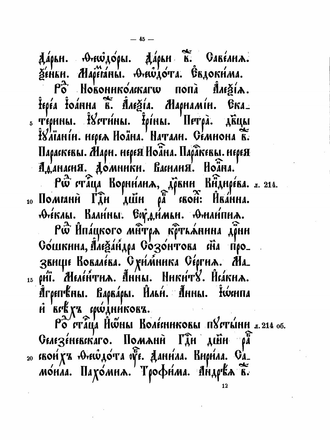 Ро Ишны Коляннкокы пКстынн л. 214 об.