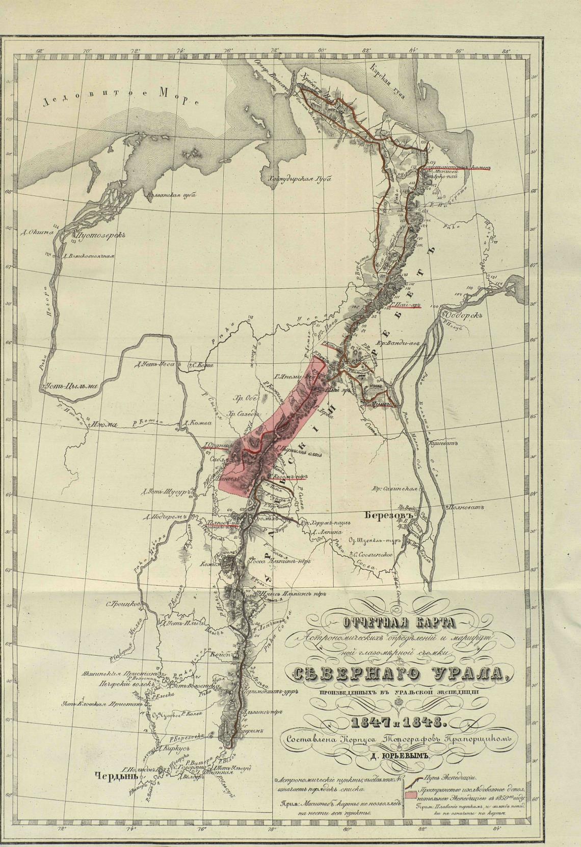 Топографическое описание Северного Урала, исследованного уральскою экспедициею в 1847 и 1848 годах. - Юрьев Д.