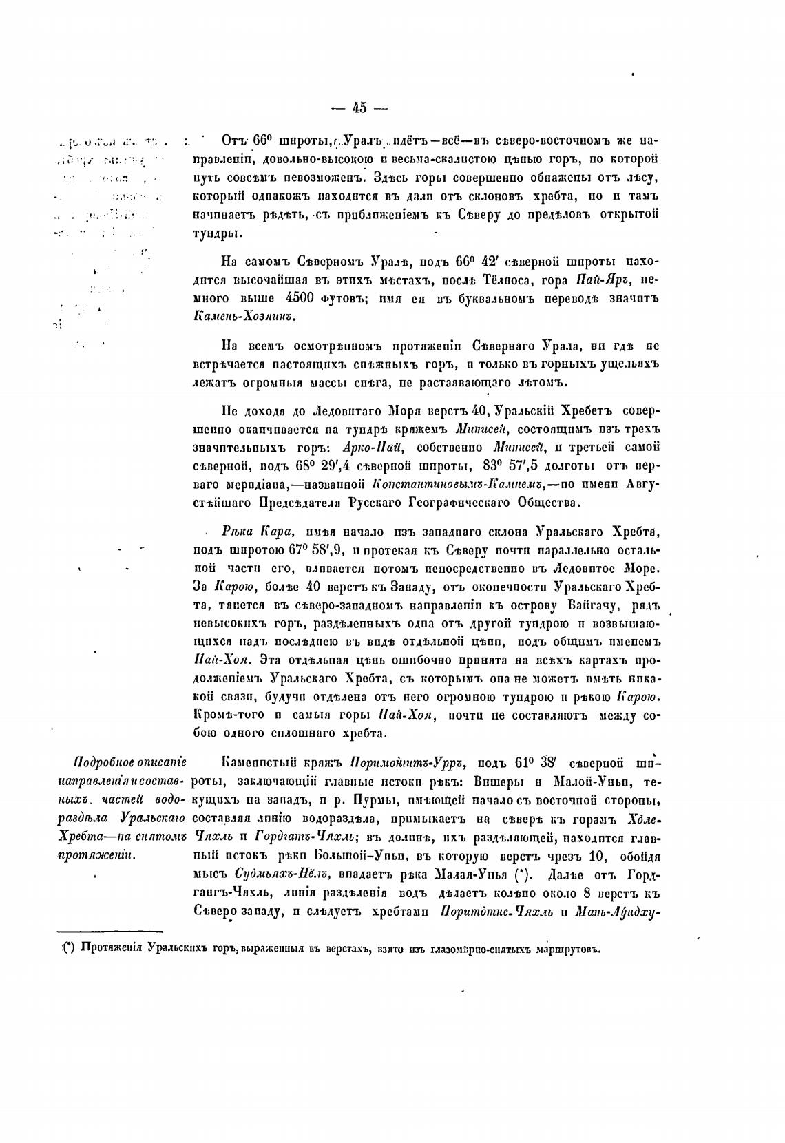 С) Протяжен;л Уральскихъ горъ, выра;кеииыа въ верстахъ, взпто изъ глазомт.рпо-сиатыхъ маршрутовъ.