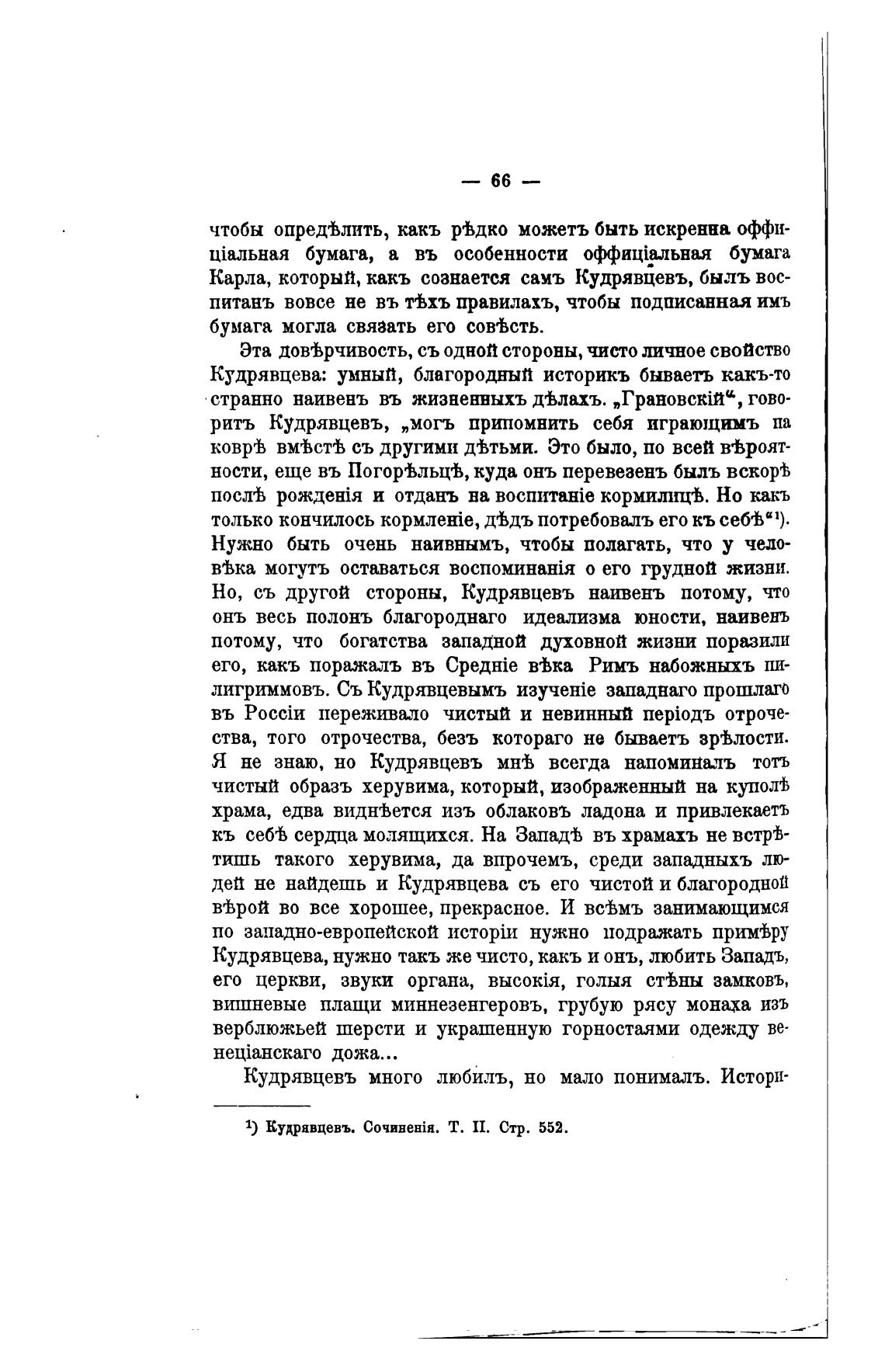 Кудрявцевъ много любилъ, но мало понималъ. Истори-