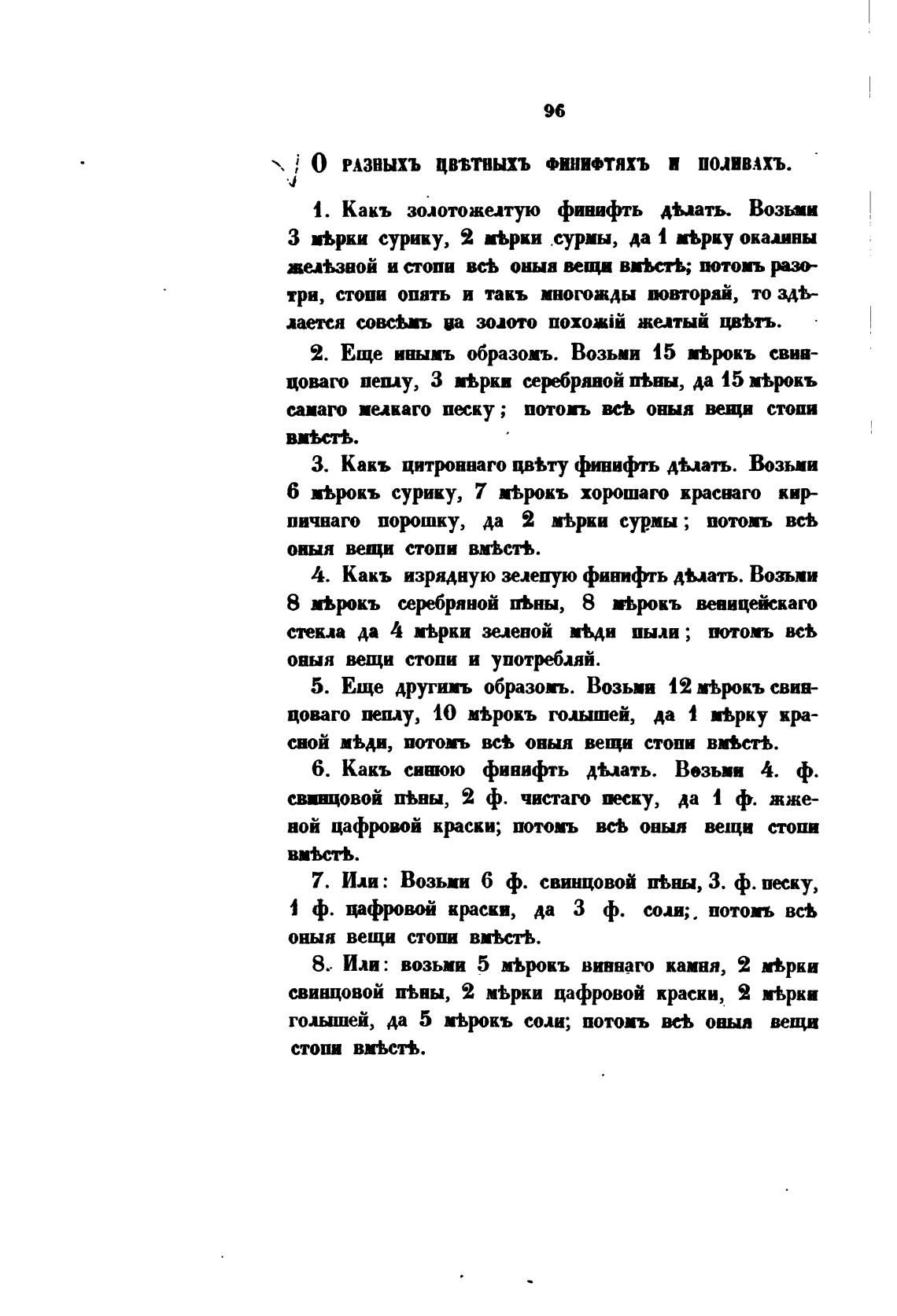 О РАЗНЫХЪ ЦВЂТНЫХЪ ФИНИФТЯХЪ И ПОЛИВАХЪ.
