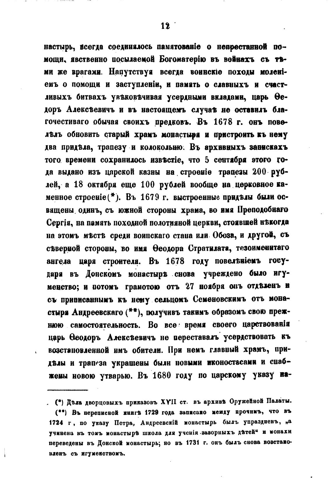 1724 г , по указу Петра, АндреевсвТ монастырь быдъ упраздвенъ, „а