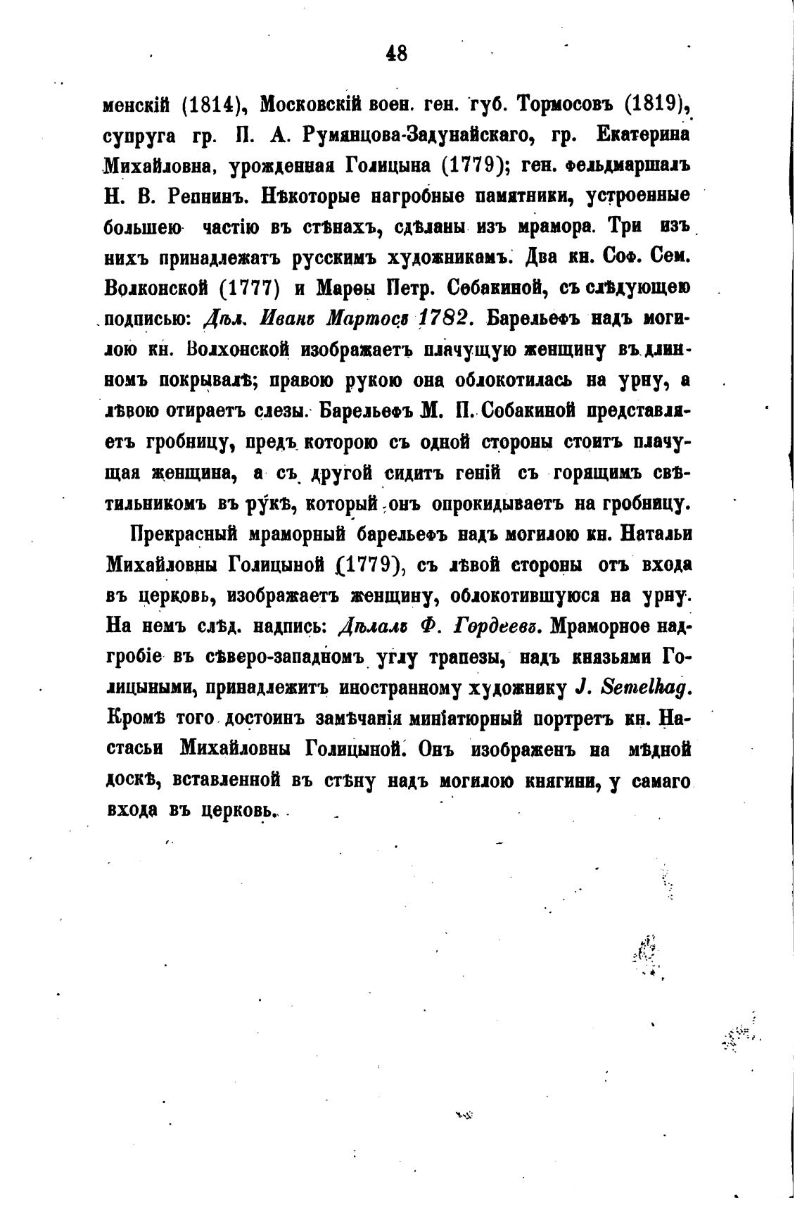 МихаИдовны Голицыной (1779), съ Пвой еторовы отъ входа