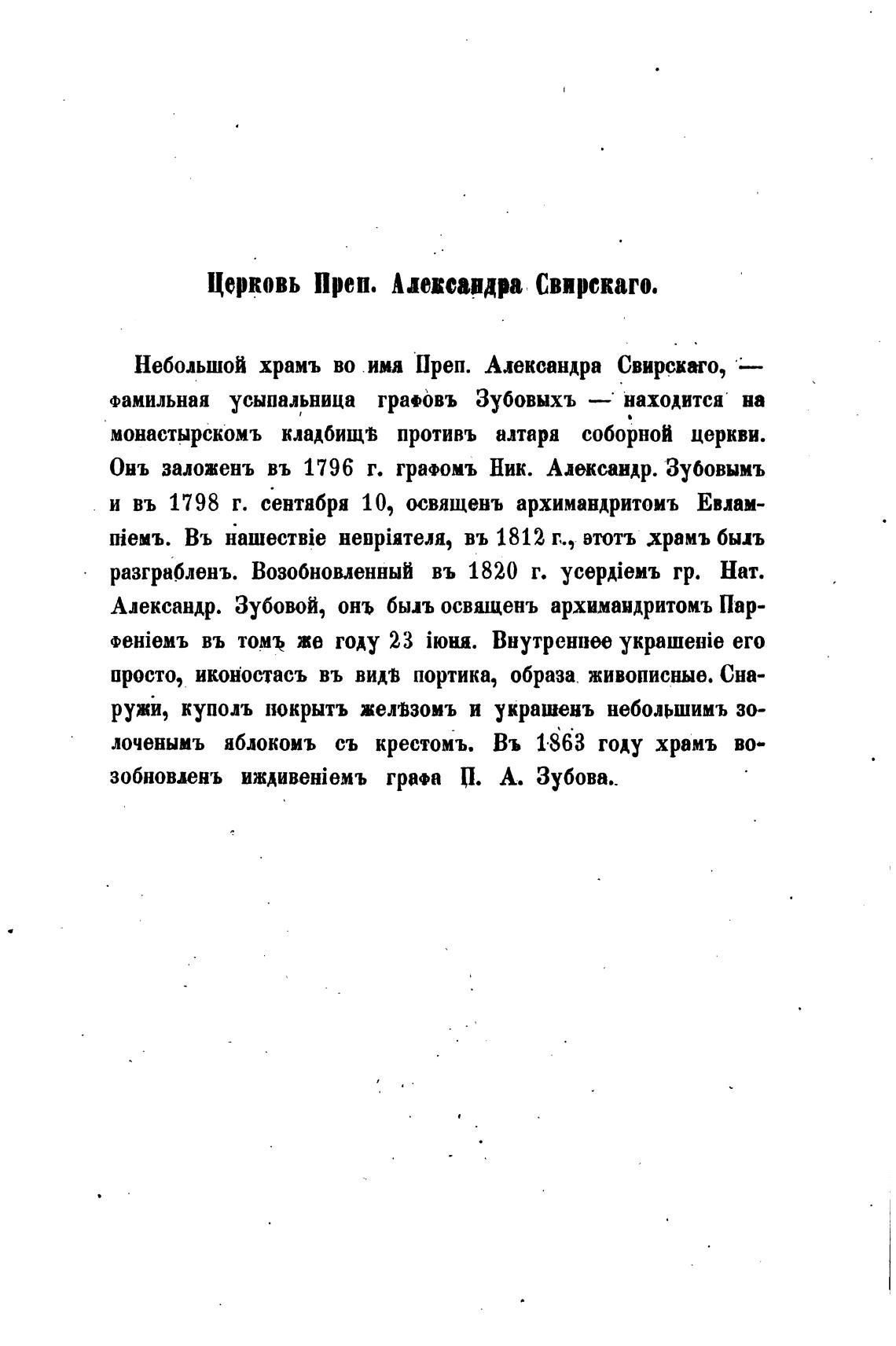 Небольшой храмъ во имя Преп. Александра Свирскаго,