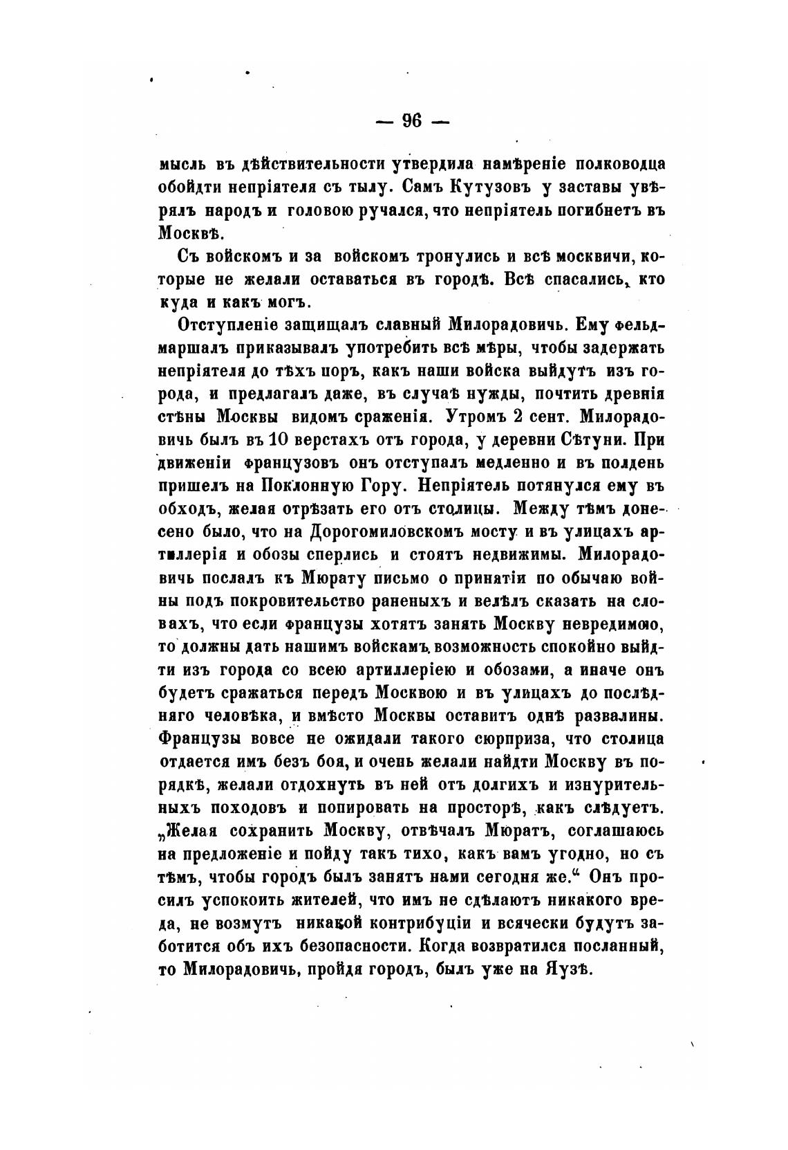 Желая сохранить Москву, отввчалъ Мюратъ, соглашаюсь