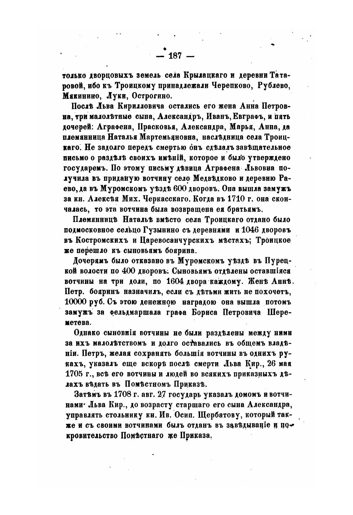 за кн. Алекси Мих. Черкасскаго. Когда въ 1710 г. она скон-