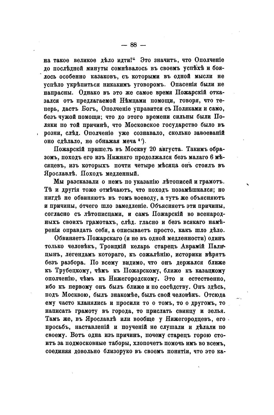Обвиняетъ Пожарскаго (и не въ одной медленности) одинъ