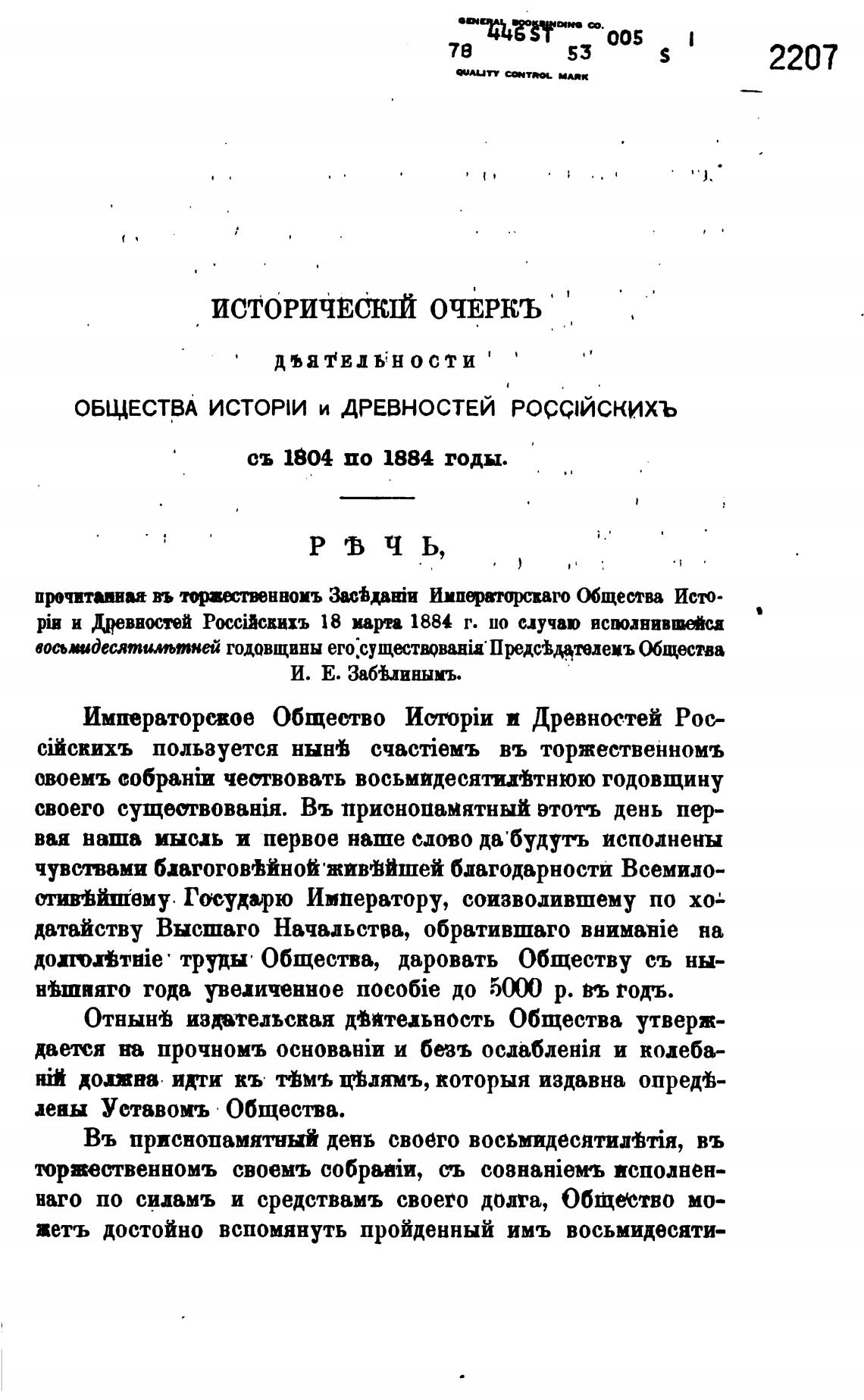 ОБЩЕСТВА ИСТОРИ и ДРЕВНОСТЕЙ РОССIЙСКИХЪ