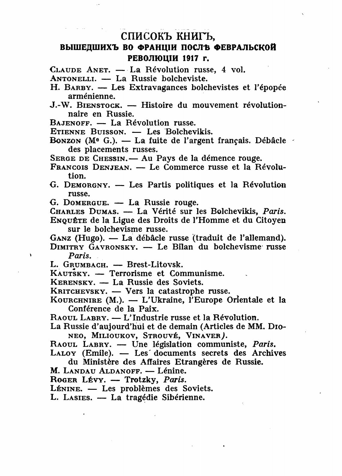CHARLES DUMAS. — La V6rit6 sur les Bolchevikis, Paris.