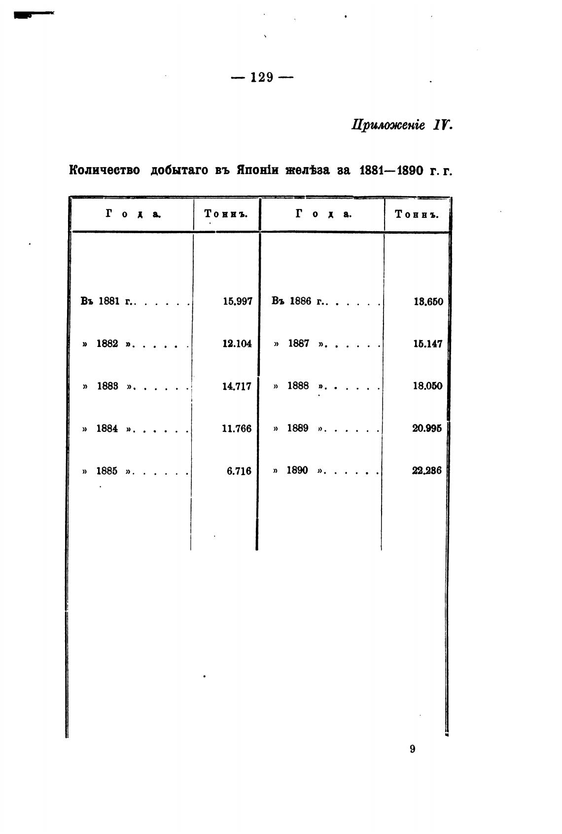 Количество добытаго въ Япон1и жел•Ьза ва 1881— 1890 г. г.