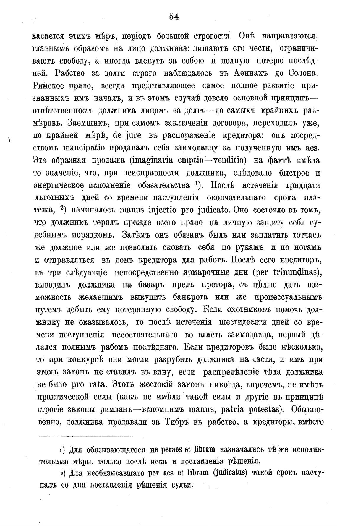 ствомъ mancipatio продавалъ себя заимодавцу за полученную ииъ aes.