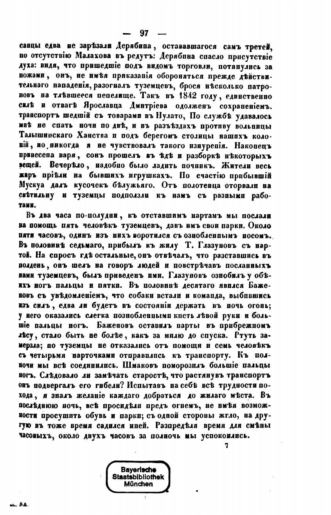 ва помощь пять челов%къ туземцевъ, давъ имъ свои парки. Около