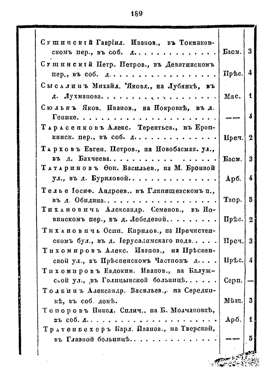 Т и х во в п чь Осип. Кирплов., па Пречистен-