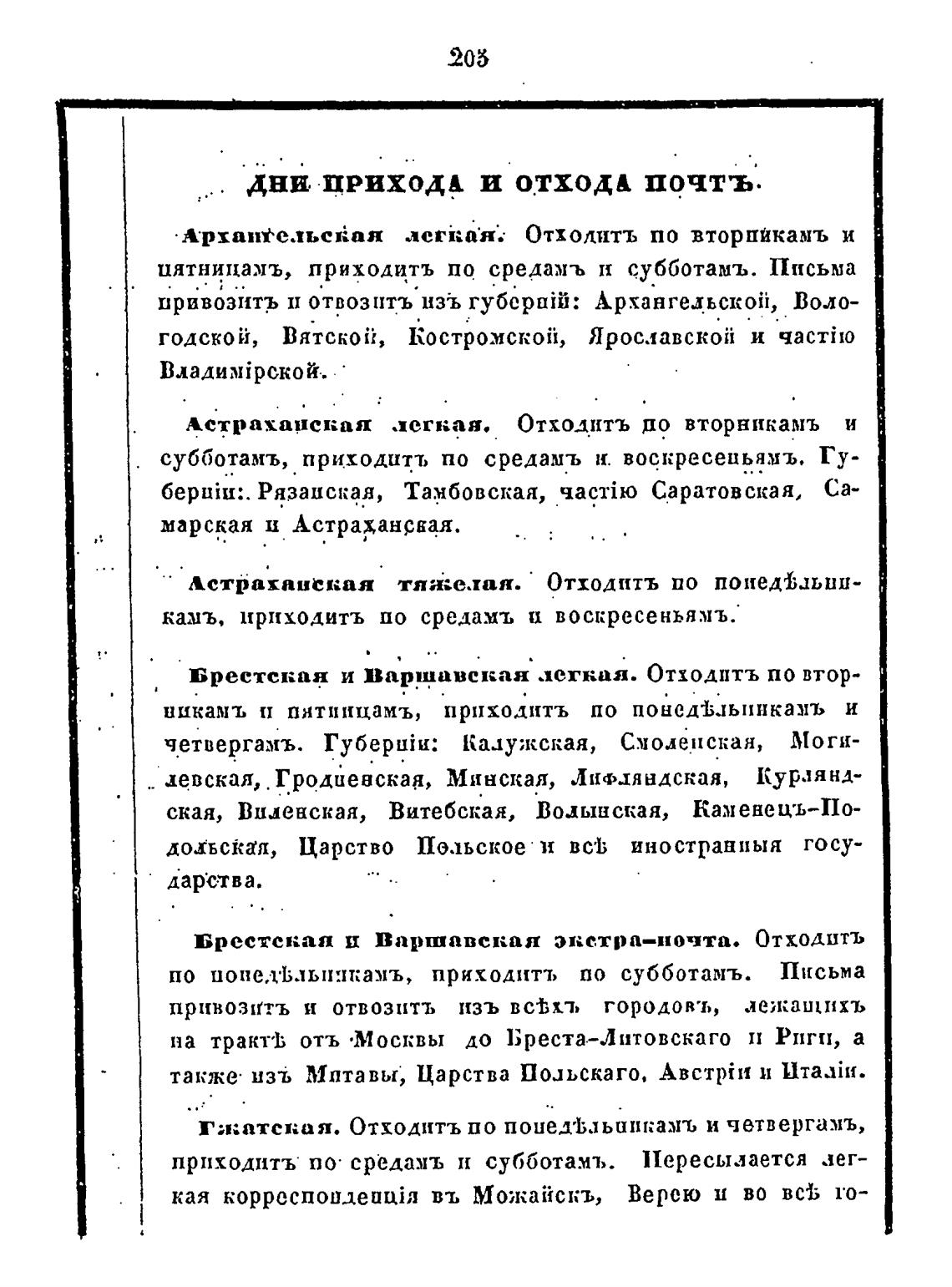 дни прихода и отхода почтъ.