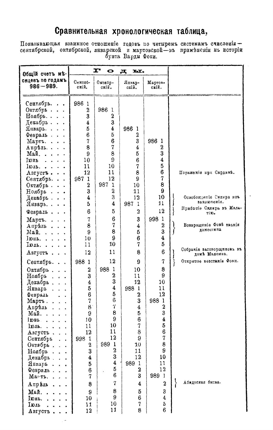 Сравнительная хронологическая таблица,