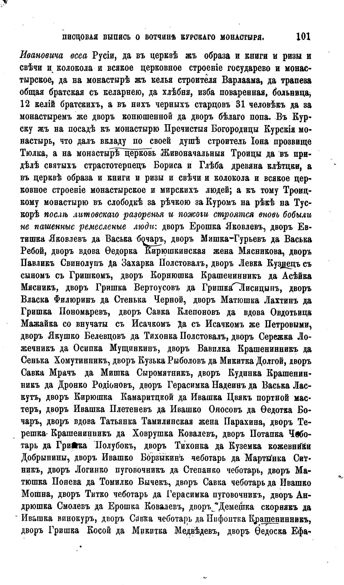 ПИСЦОВАЯ ВЫПИСЬ О ВОТЧИН КУРСКАГО МОНАСТЫРЯ.