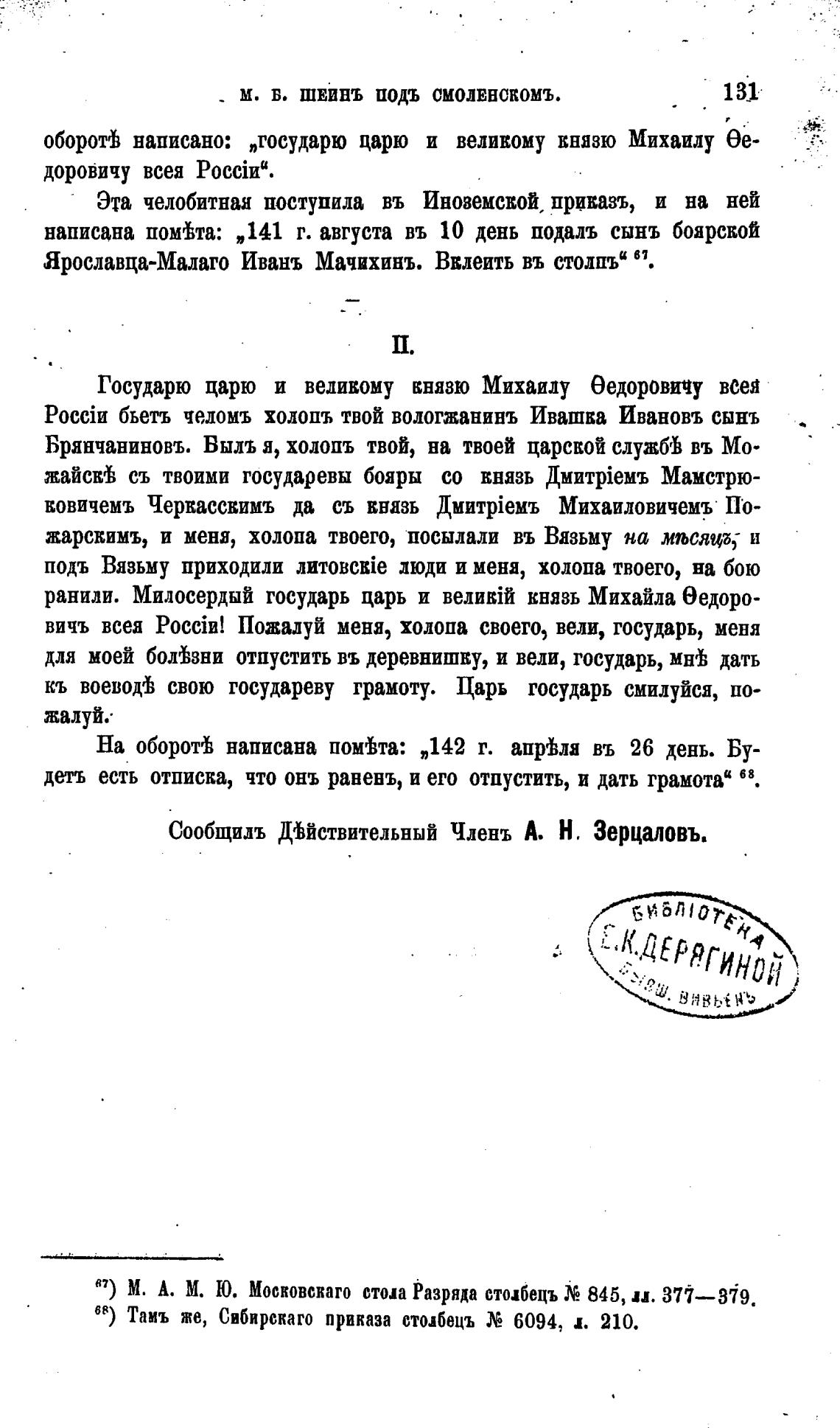 R7) М. А. М. Ю. Московскаго стоп Разряда стшбецъ 845, и. 37t—3i9.