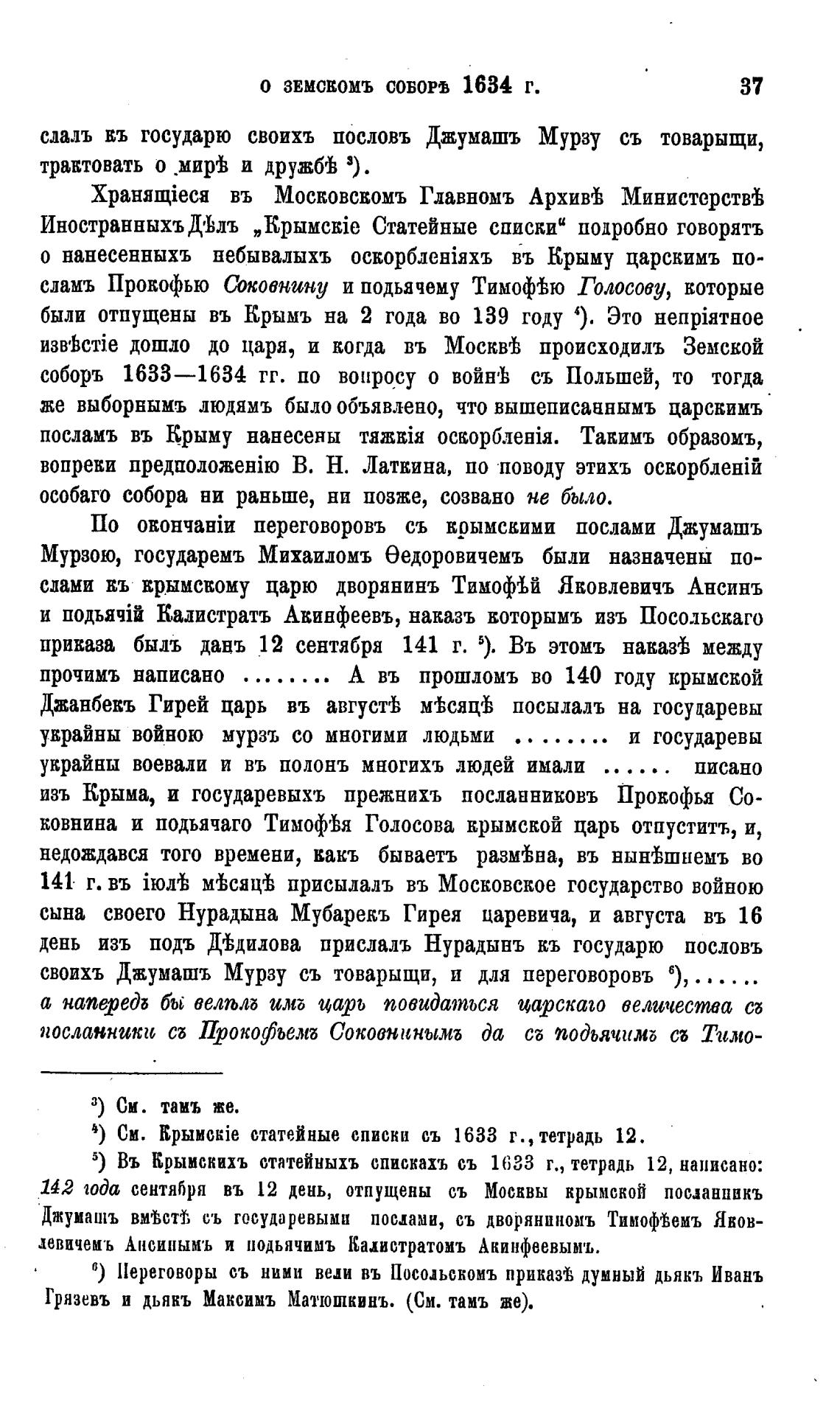 5) Въ Ерыискихъ статейныхъ спискахъ съ 1633 г., тетрадь 12, написано: