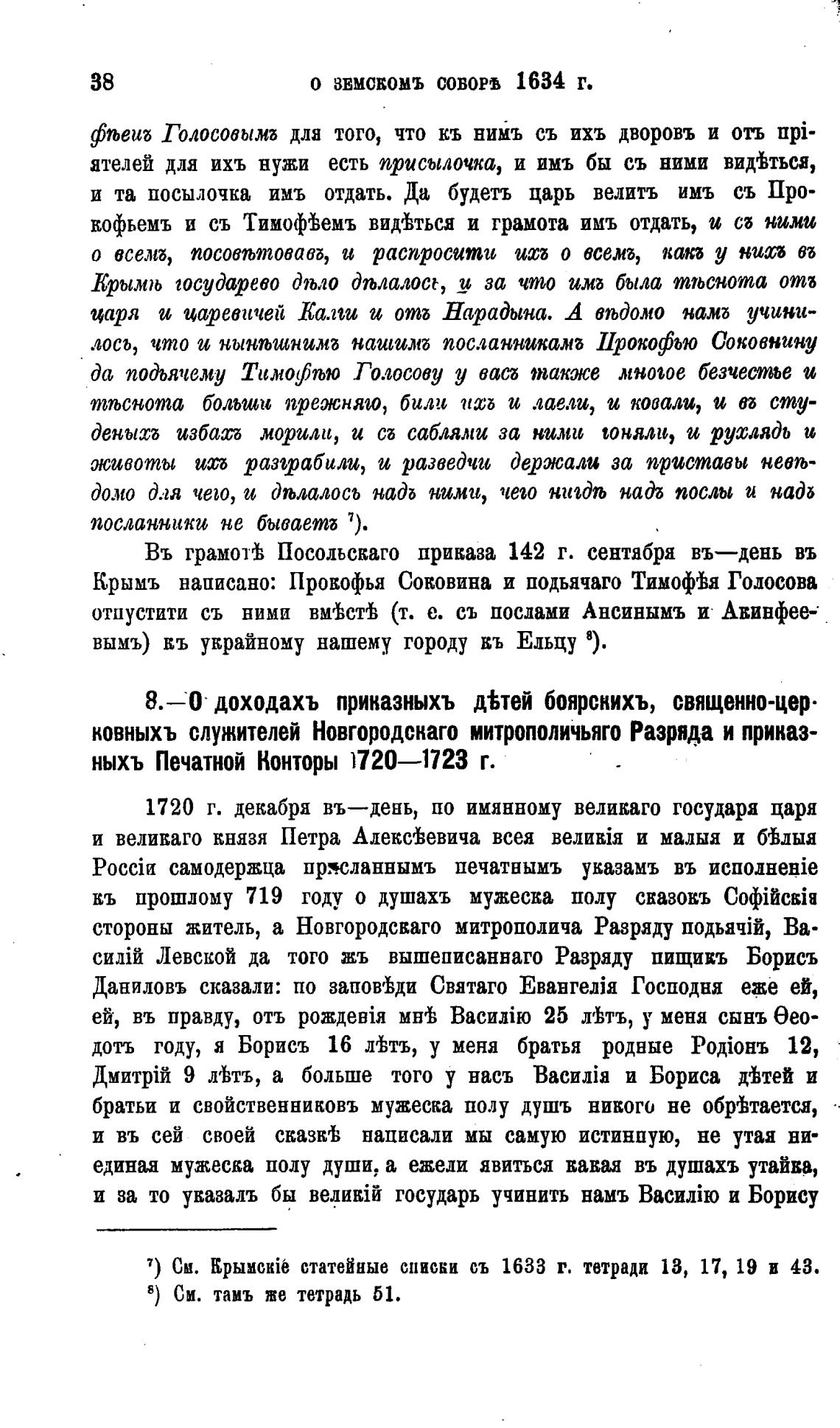 7) См. kpb1M0kib статейные списки съ 1633 г. тетради 13, 17, 19 и 43.
