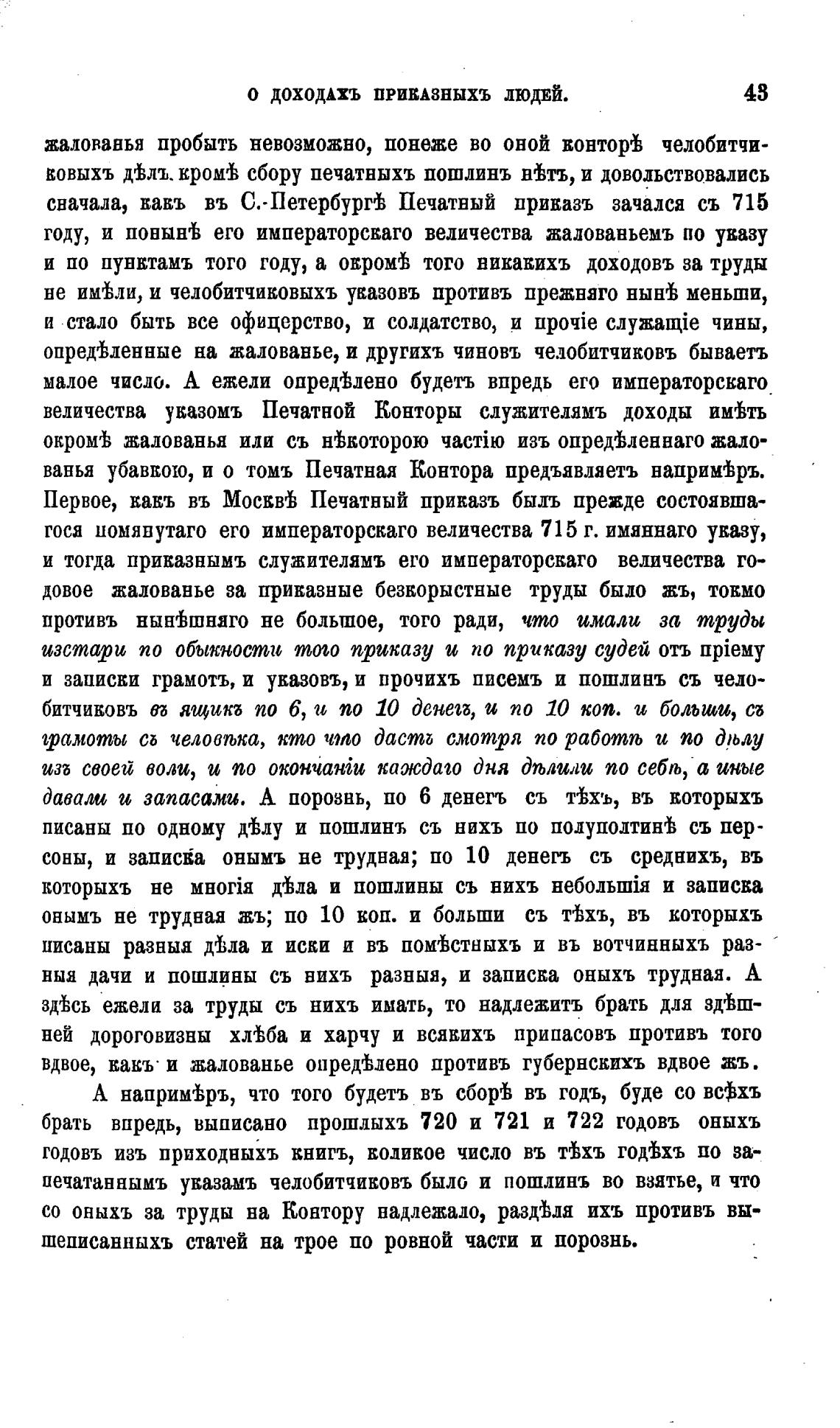брать впредь, выписано прошлыхъ 720 и 721 и 722 годовъ оныхъ
