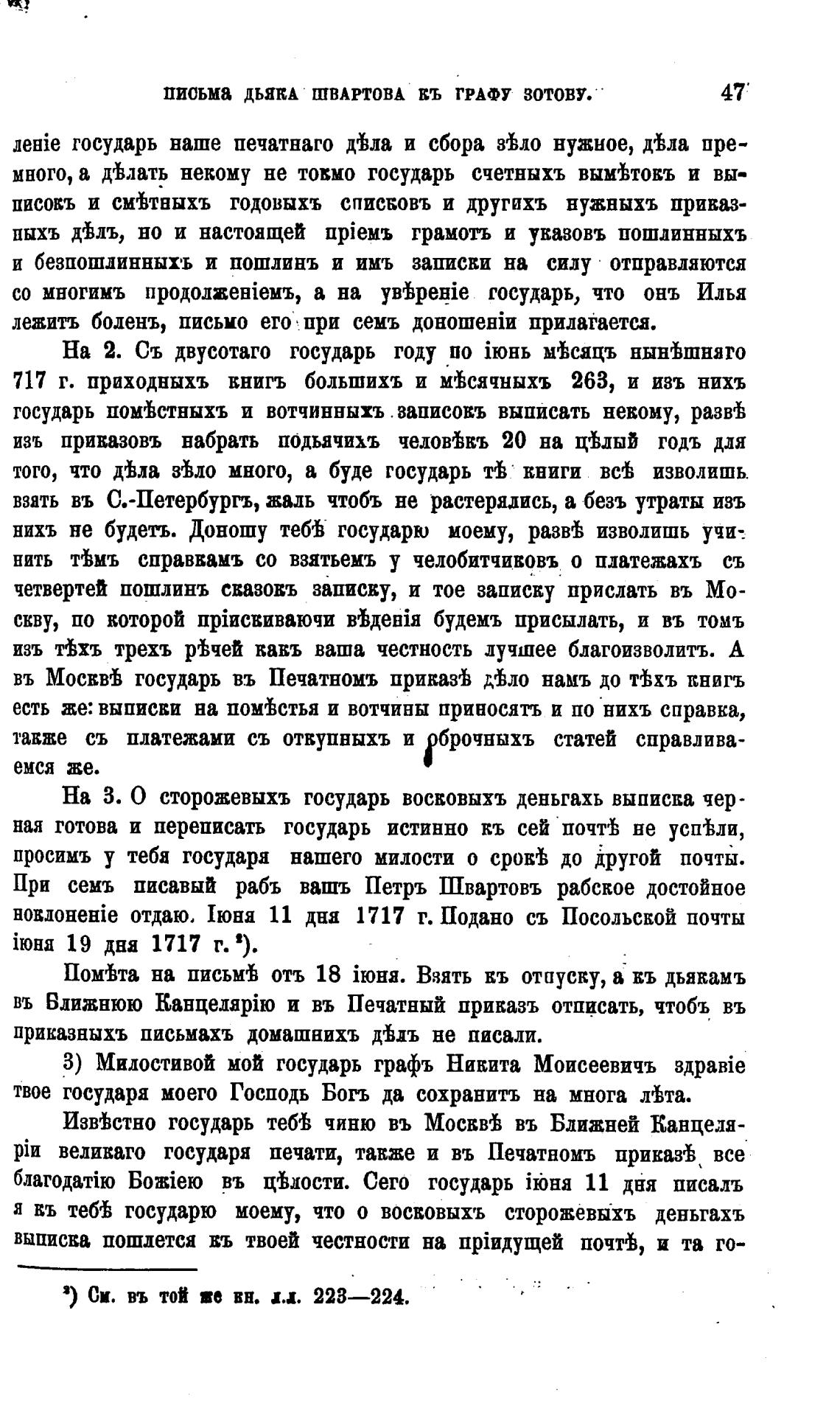письма ДЬЯКА ШВАРТОВА ВЪ ГРАФУ ЗОТОВУ.