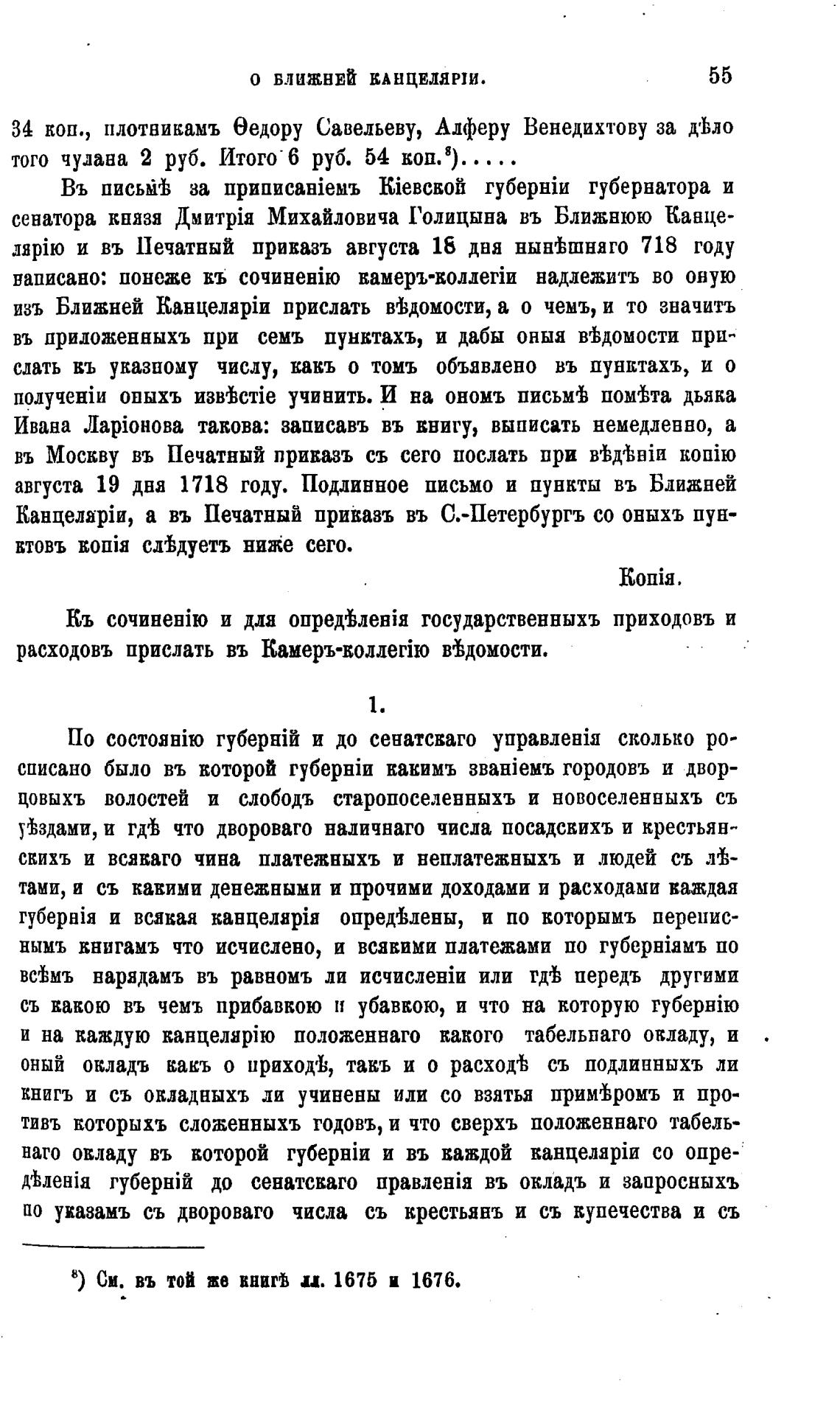 сенатора князя Михайловича Голицына въ Ближнюю Канце-