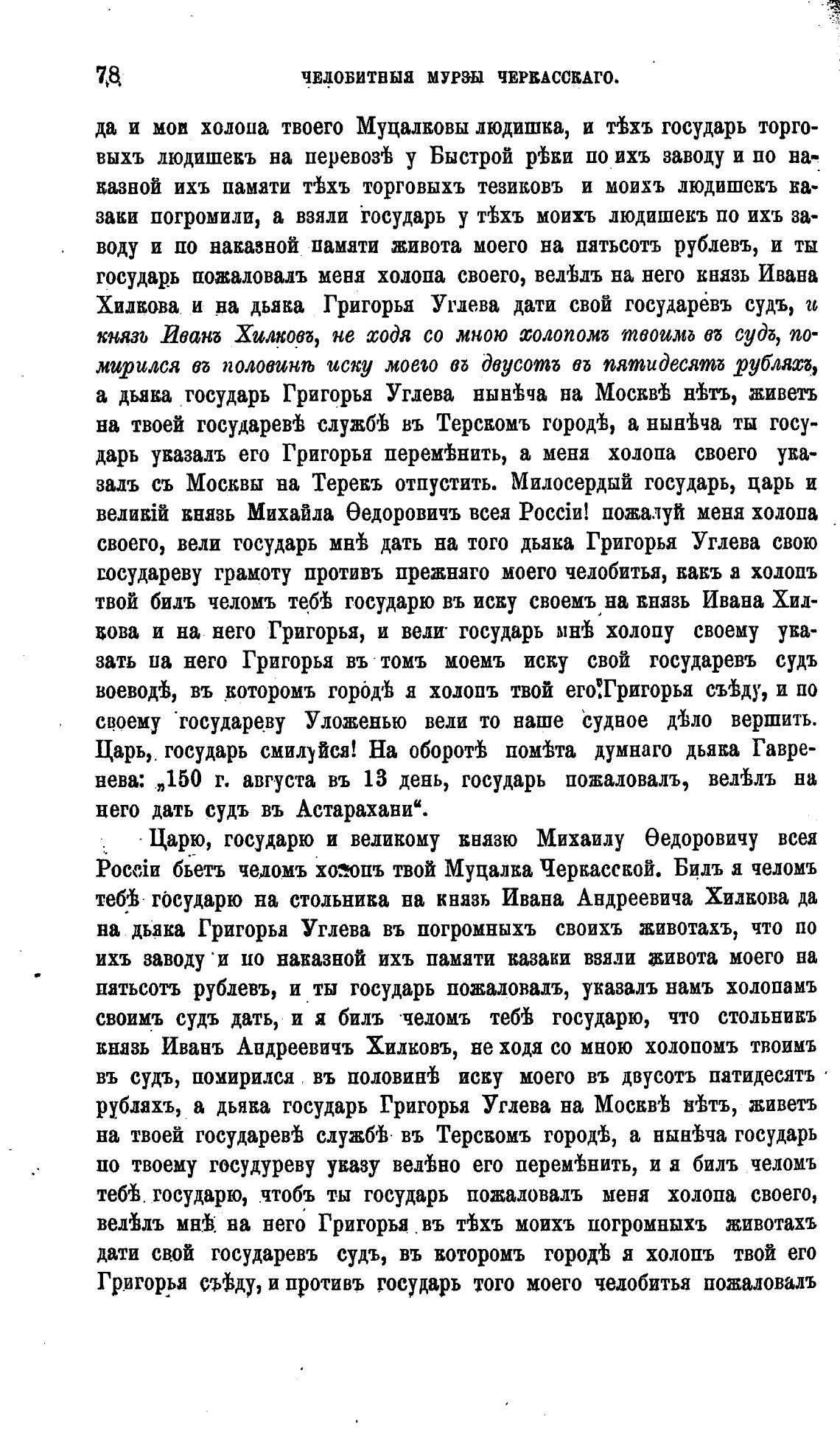 бьетъ чедомъ хозопъ твой Муцалка Черкасской. Биль я челомъ