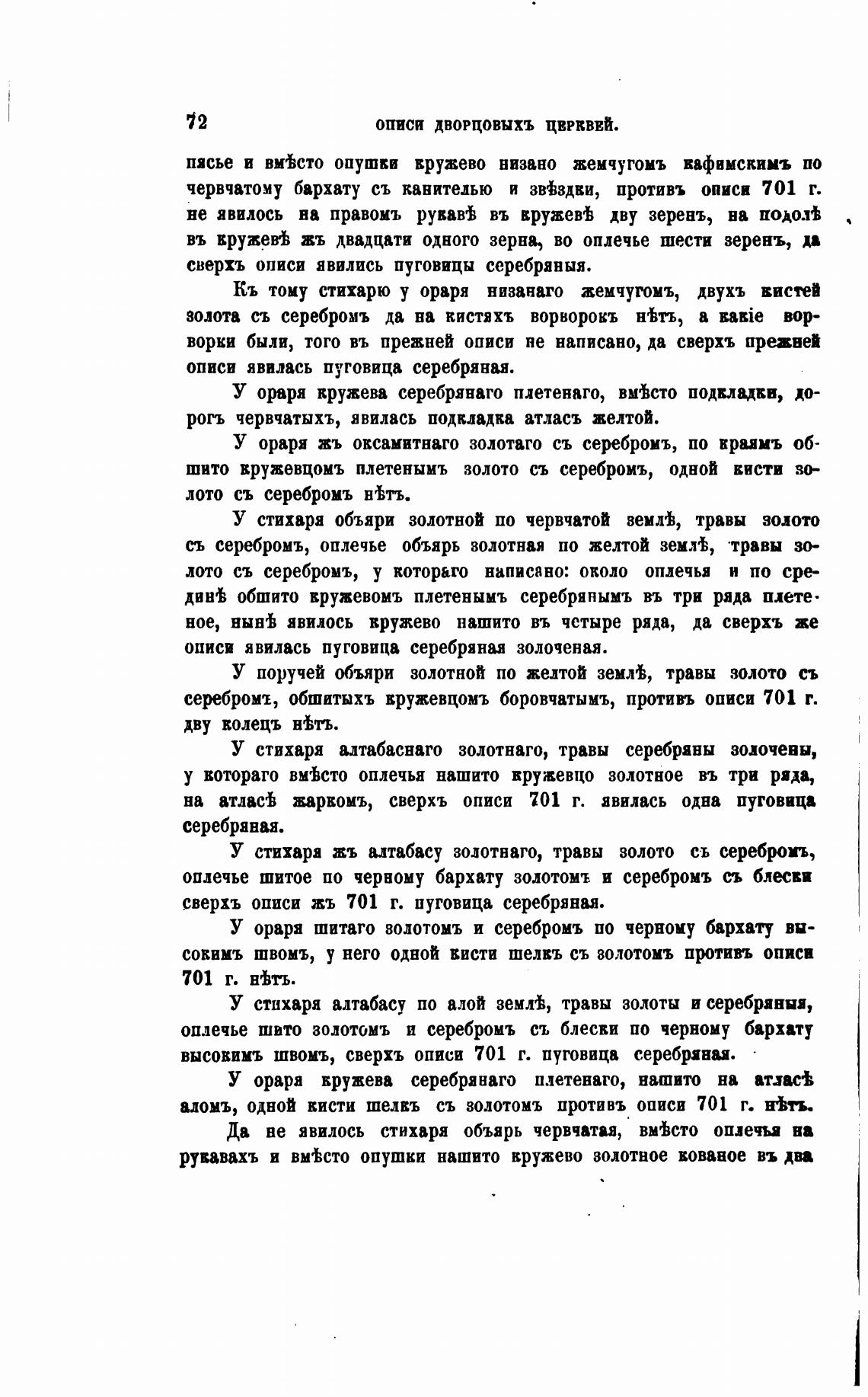 сербромт, обшитыхъ вружевцомъ боровчатымъ, противь описи 701 г.