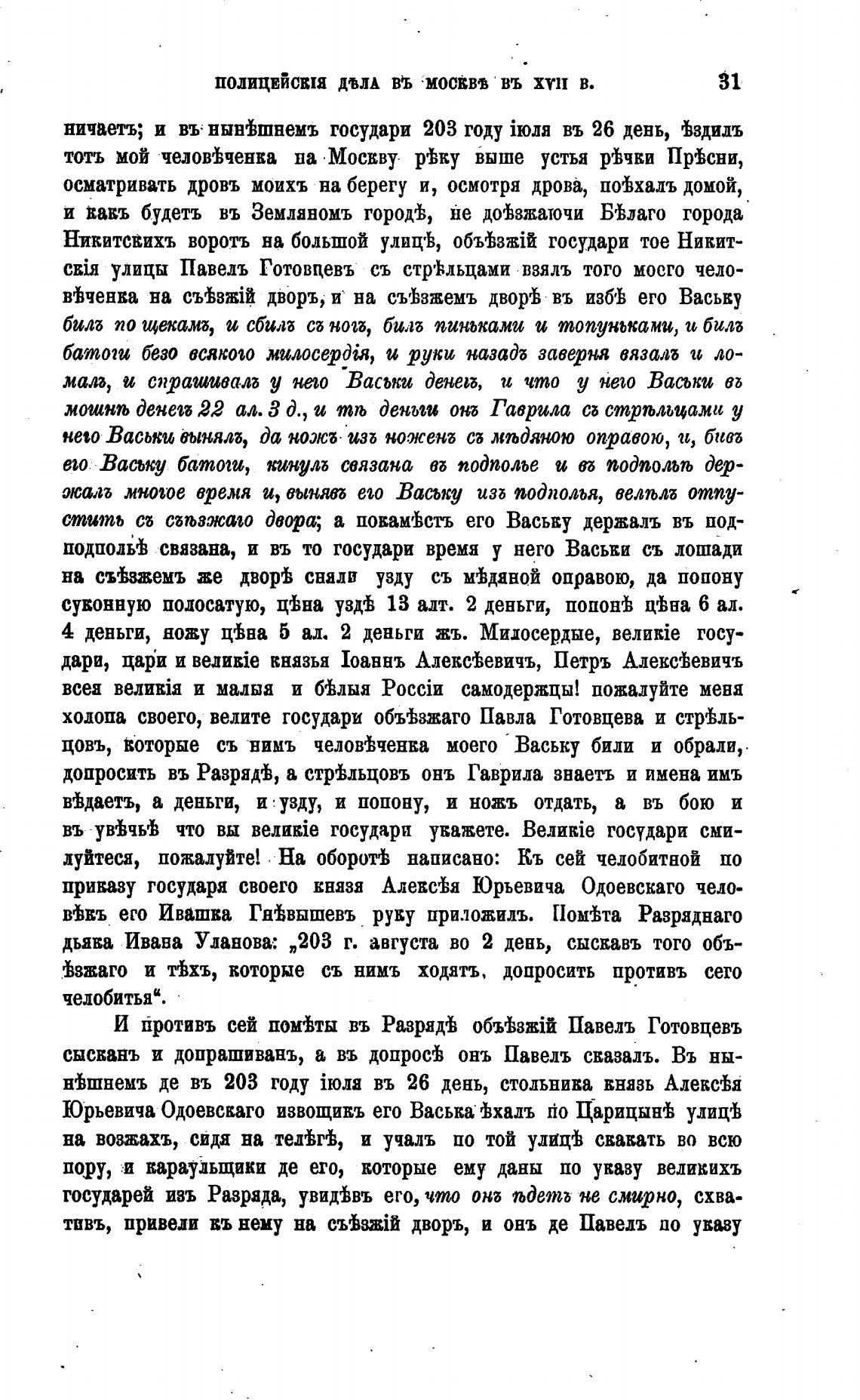 Юрьевича Одоевскаго извощикъ его Васька 'ћхалъ йо Царицынгь улицгЬ
