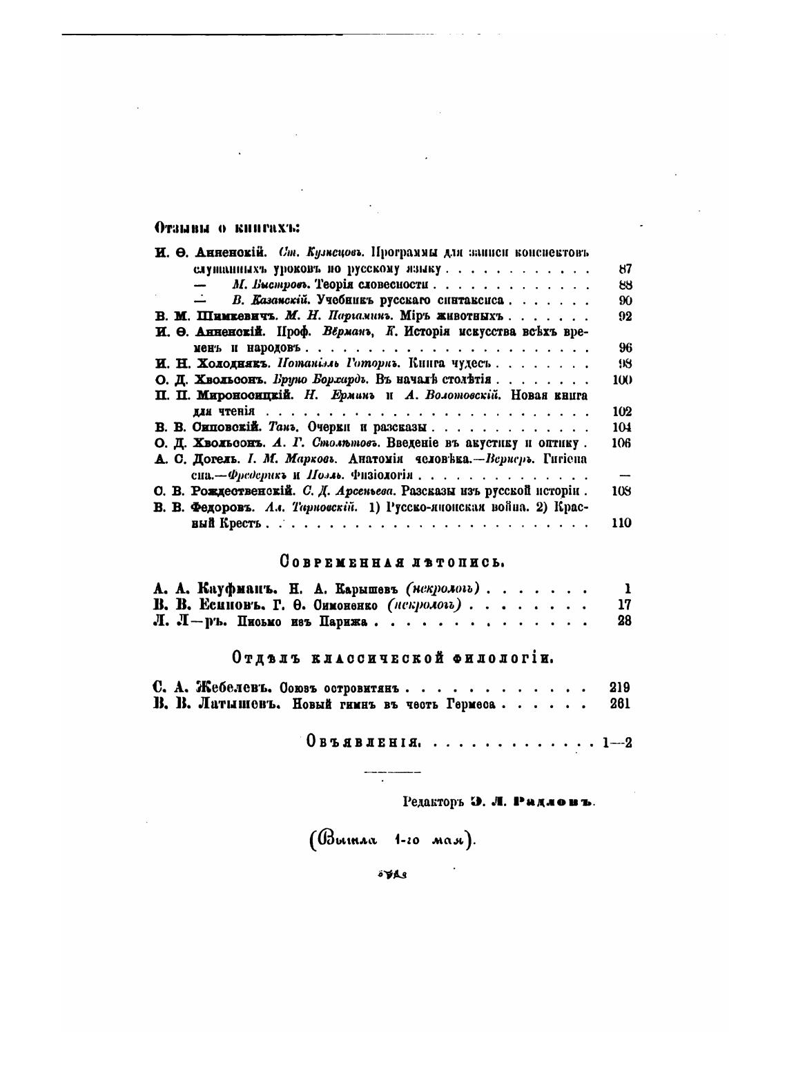 В. В. Латышовъ. Новый гинь въ честь Гериеоа . . . . . .