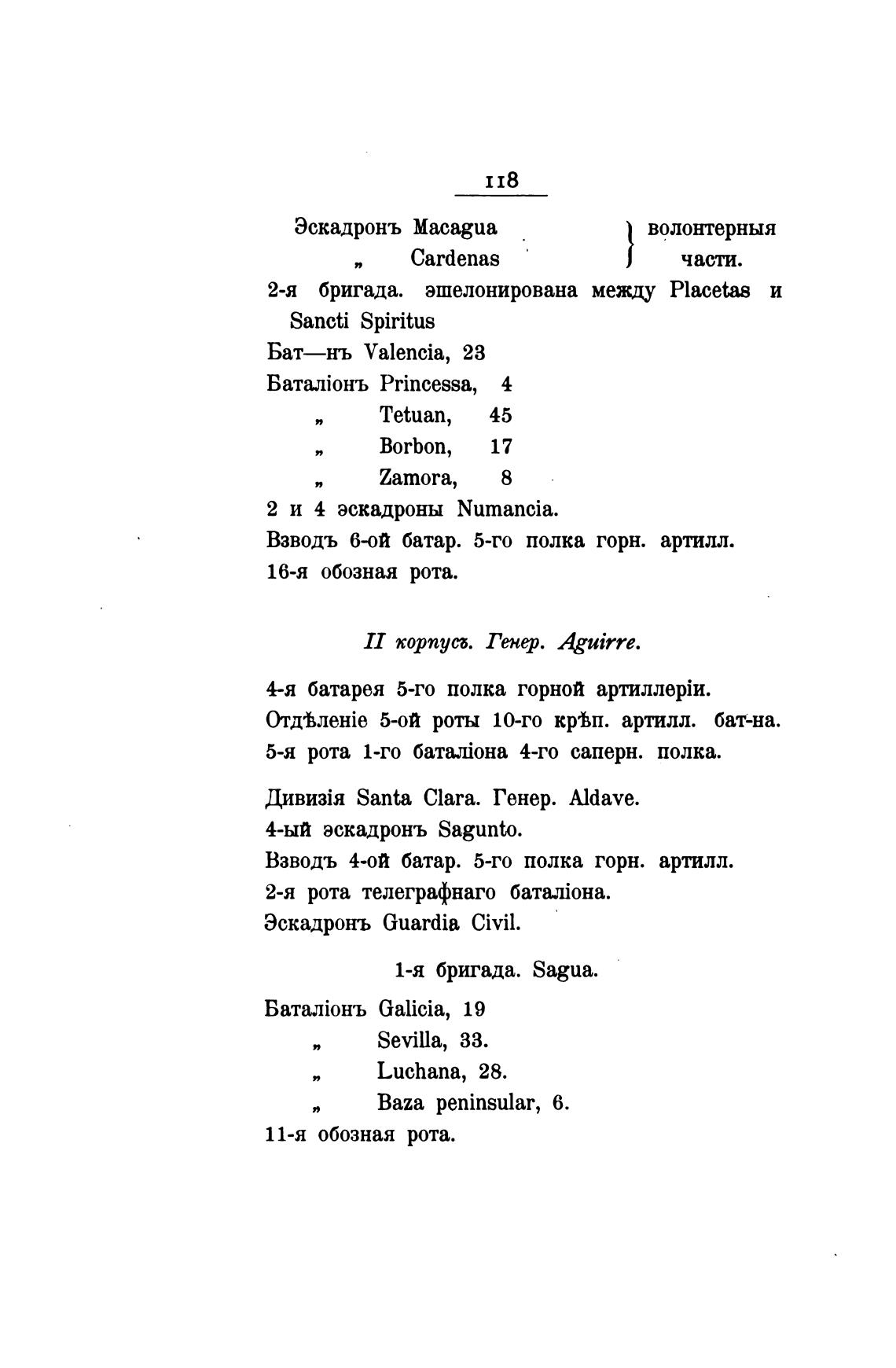 II корпуса. Генер. Aguirre.
