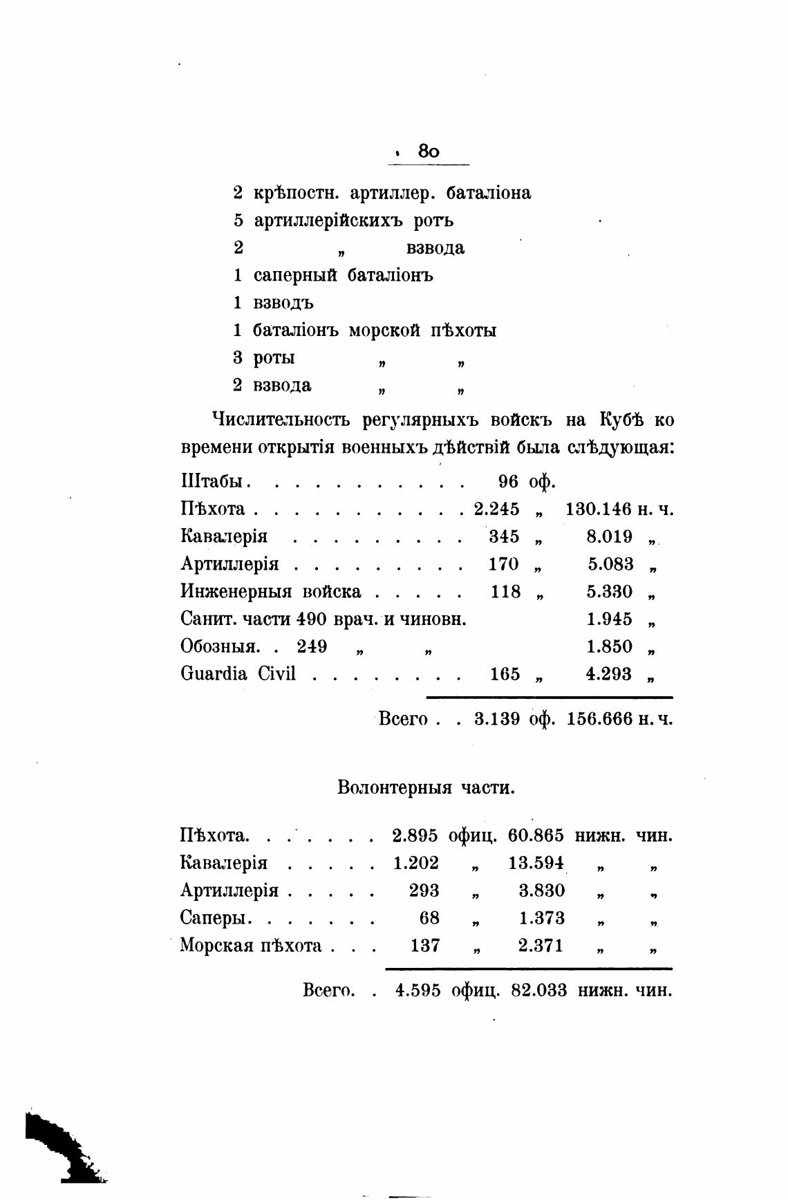 Числительность регулярныхъ войскъ на Куб'В ко