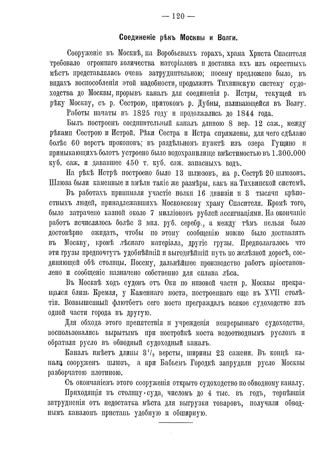 ходства до Москвы, прорывъ каналь для р. Истры, текущей въ