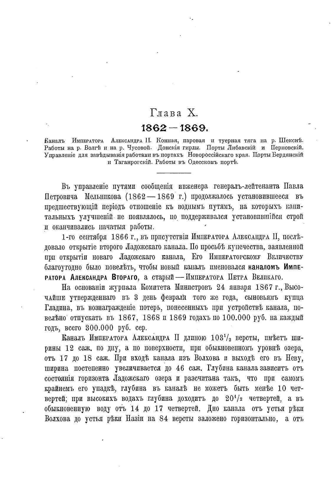 Каналь ИМПЕРАТОРА АЛЕКСАНДРА II длиною 1031/2 версты, шуВетъ ши-