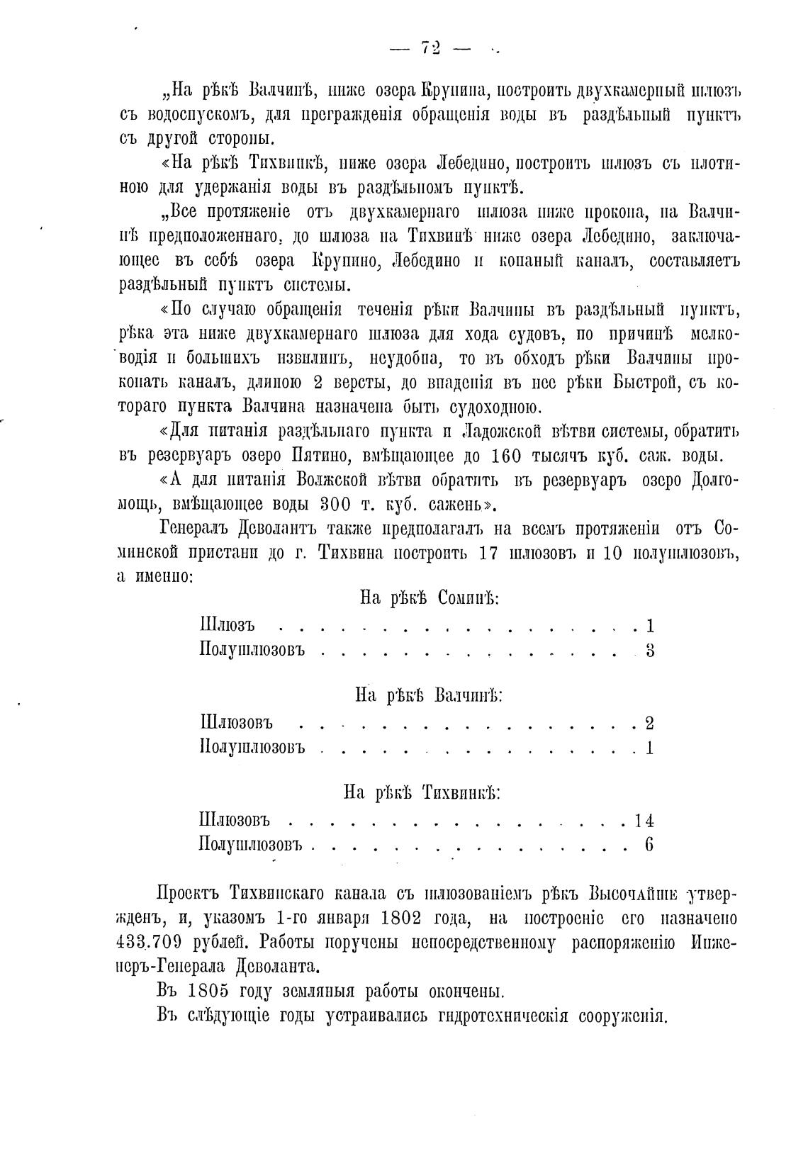 минской пристани до г. Тихвина построить 17 шлюзовъ и 10 ПОЛУИ'ЛЮ30ВЪ,