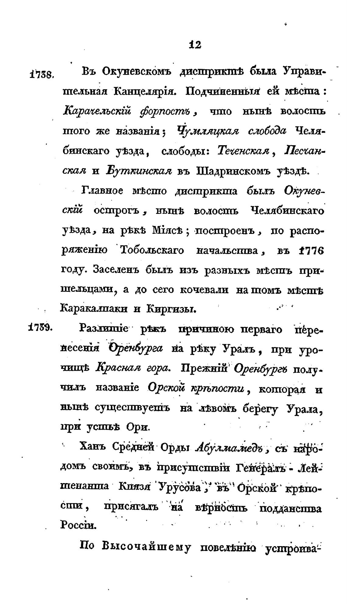 скЙЕ острогъ , волость Челябинскаго