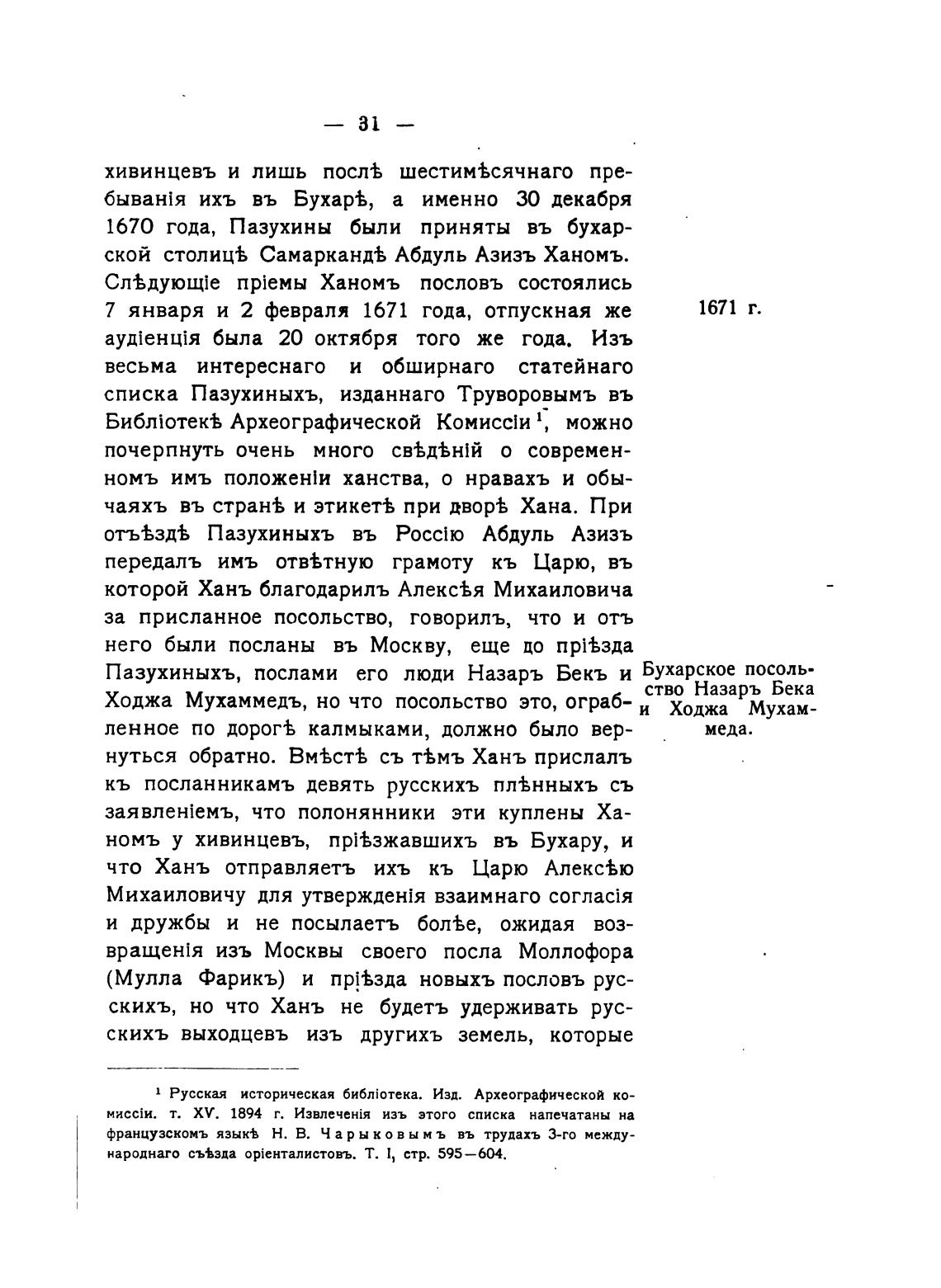 Пазухиныхъ, послами его люди Назарь Бекъ и Бухарское посоль-