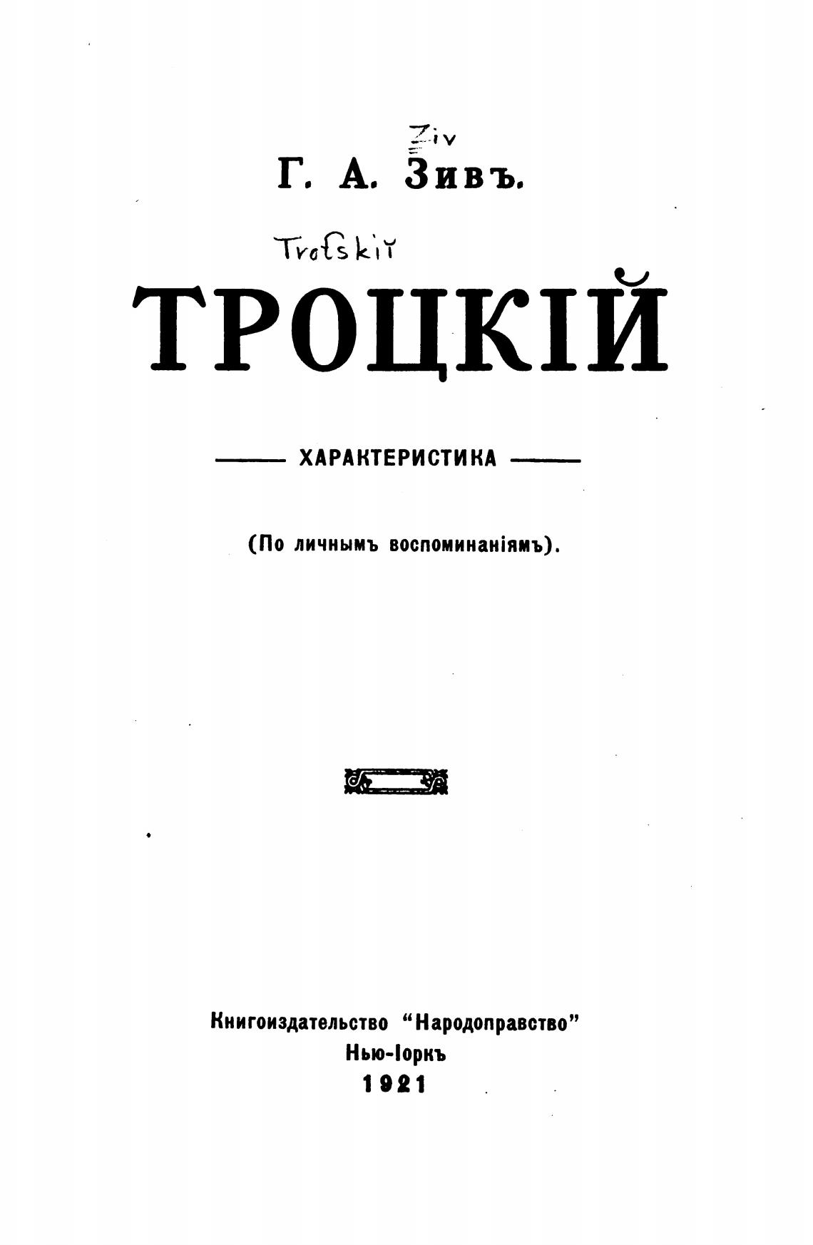 Троцкий. Характеристика (по личным воспоминаниям) - Зив Г. А.